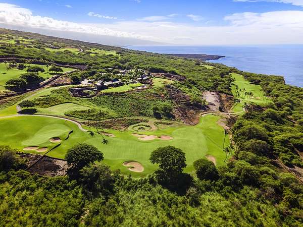 Spanning three miles along the heart of the Kona Coast, the private community of Hokuli'a lies on a lush 1,300 acres, just minutes from the cozy town of Kailua-Kona. The sheltered climate provides gentle coastal breezes, ideal year-round conditions for outdoor living, golf and water pursuits. The Club at Hokuli'a is one of the finest ocean side clubs in the world, home to an amazing Jack Nicklaus Signature Design golf course. Rising 400 feet from the shore, every hole is framed by dramatic ocean views, and kissed by cool ocean breezes. The Polynesian-style compound has luxury amenity offerings available to members and their guests, with every facility feature taking advantage of unparalleled commanding views of the Pacific Ocean - complete with world-famous Kona sunsets. Our members enjoy the architecturally stunning men's and women's golf lounge, locker-room and golf shop facility, designed to complete the world-class Jack Nicklaus Signature golf course experience at Hokuli'a. In addition, members can workout at the Club's ocean view exercise and fitness complex, which includes a 3-lane lap pool and 2 tennis courts and 2 pickelball courts. The spa & massage facility includes a restful open-air yoga studio for after-sport relaxation and rejuvenation. Surrounded by beautifully-manicured tropically landscaped grounds, the facility also features an expansive event-lawn area with endless ocean views for every type of entertaining and special events. (Lot 99, Phase 1) is an outstanding 1.49-acre homesite with amazing ocean views. Elevation 517 ft. An equity membership in the Club at Hokuli'a is included in the sales price. Hokuli'a is a gated community with security personnel on duty 24/7. This property has been grubbed and has a clean archaeological report.