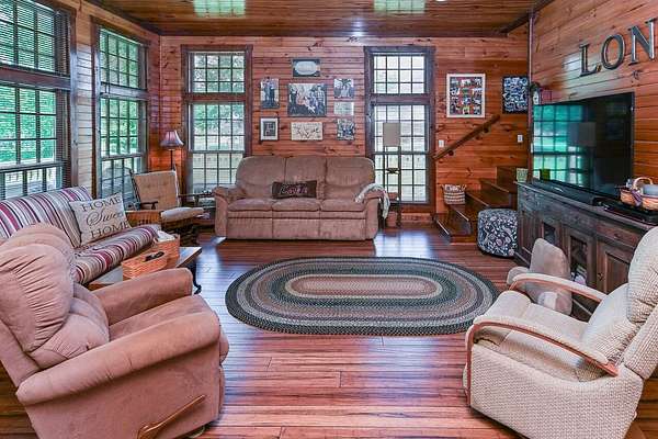 Est $4,373/moSmith Lake / Sipsey Fork4BR | 4BA | +/-330' Waterfront | Rare Double Flat LotThis Smith Lake cabin retreat sits on a hard-to-find double flat lot with approximately 330 feet of year-round waterfront, offering exceptional space, privacy, and easy lake access. The home features classic cabin character with an open, light-filled interior and expansive windows capturing peaceful lake views....