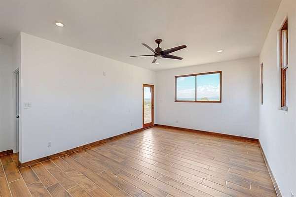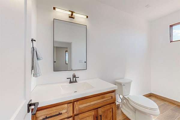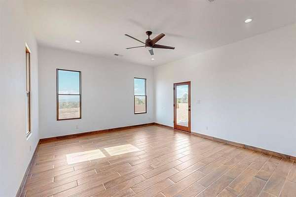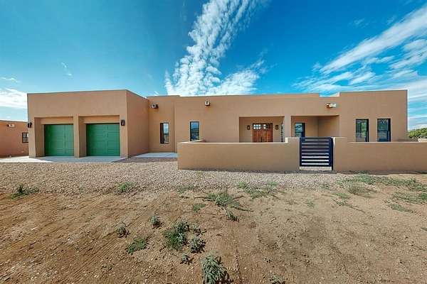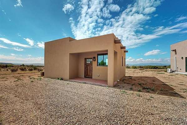 An extraordinary Santa Fe retreat where timeless Pueblo architecture meets modern luxury, just 17 miles from the Historic Plaza. This exceptional property features a stunning 3-bedroom, 2-bath main residence plus a private 1-bedroom, 1-bath casita, offering over 3,000 square feet of beautifully designed living space with exquisite craftsmanship and thoughtful design. The open-concept floor plan creates a seamless flow between the living, dining, and kitchen areas-perfect for both elegant entertaining and everyday living. Large windows bathe the interior in natural light, enhancing the warm and inviting ambiance. The chef's kitchen is a true centerpiece, showcasing quartz countertops, stainless LG appliances, a premium Thor stove and oven range, and abundant A&H custom cabinetry, blending style and functionality with ease. Santa Fe architectural details elevate the home, including hand-troweled plaster walls, soaring 12-foot ceilings, exposed beams and vigas, wood-look tile flooring, and a charming fireplace that adds warmth and character. High-quality Jeld-Wen double-hung wood-metal clad windows further enhance both beauty and efficiency. The private casita offers a wonderful opportunity for guest accommodations, multigenerational living, or rental potential.