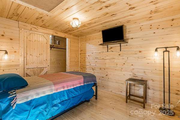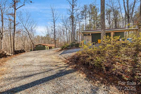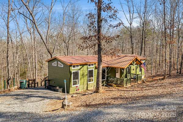 Discover tranquility in a charming cottage, designed for comfort and efficiency close to groceries, restaurants, Lake Lure and the Tryon Equestrian Center. The property features 2BR and a loft area creating an ideal retreat or investment opportunity. The level knoll adjacent to the garage presents excellent opportunity for constructing a primary residence, or add tiny homes for max income. Vehicle accommodation is generous, featuring 2-car detached garage, 1-car carport and ample parking.The outdoor living spaces are testament to relaxed country living. Welcoming covered front porch invites morning coffee moments, while screened-in back porch offers bug-free enjoyment of nature's symphony. The sunny back patio area, complete with a fire pit table, provides the perfect setting for evening gatherings under the stars. This move-in ready home comes completely furnished, allowing you to start living your dream lifestyle immediately. Find your investment property now before the crowds return when Lake Lure opens in spring '26.