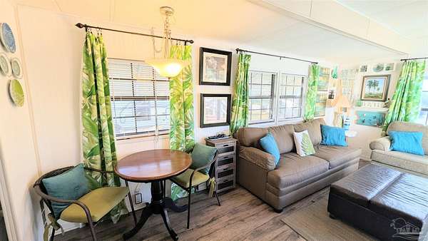 Welcome to your Enchanting Cozy Cottage nestled in the highly sought-after Spanish Cove subdivision! This delightful one-bedroom, one-bath home is great for those seeking a charming retreat! Step inside to discover inviting ceramic tile and laminate flooring that create a warm and welcoming atmosphere throughout. The modern walk-in shower adds a touch of luxury to your daily routine while the expansive side deck is an ideal space for entertaining guests. Spanning across two generous lots, this property offers ample space for you to roam and relish the beauty of the outdoors. The partially fenced yard provides both privacy and a secure area for pets and play. This property also boasts a versatile craft/game room, providing space for your creative endeavors, while a handy storage shed ensures you have all the room you need for tools and outdoor gear. With the convenience of a 50 amp power box, your RV can easily be accommodated. Also, If you like having activities right at your fingertips, the Spanish Cove Subdivision is for you! This golf cart community offers numerous amenities, including 24-hour security, an outdoor pool overlooking Perdido Bay (seasonally covered & heated), a clubhouse, bay access, a fishing pier, playground, beach area, & tennis/pickleball courts! Additionally, this home is just minutes away from a public boat launch, the stunning beaches of the Gulf of America, and a variety of shopping, dining, and amusement park options--everything the Gulf Coast has to offer! Don't miss your chance to own this serene sanctuary in Spanish Cove- it's not just a home, it's a lifestyle! Call & schedule your showing TODAY! Buyer to verify all information during due diligence.