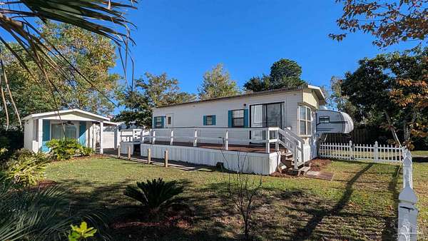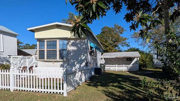 Welcome to your Enchanting Cozy Cottage nestled in the highly sought-after Spanish Cove subdivision! This delightful one-bedroom, one-bath home is great for those seeking a charming retreat! Step inside to discover inviting ceramic tile and laminate flooring that create a warm and welcoming atmosphere throughout. The modern walk-in shower adds a touch of luxury to your daily routine while the expansive side deck is an ideal space for entertaining guests. Spanning across two generous lots, this property offers ample space for you to roam and relish the beauty of the outdoors. The partially fenced yard provides both privacy and a secure area for pets and play. This property also boasts a versatile craft/game room, providing space for your creative endeavors, while a handy storage shed ensures you have all the room you need for tools and outdoor gear. With the convenience of a 50 amp power box, your RV can easily be accommodated. Also, If you like having activities right at your fingertips, the Spanish Cove Subdivision is for you! This golf cart community offers numerous amenities, including 24-hour security, an outdoor pool overlooking Perdido Bay (seasonally covered & heated), a clubhouse, bay access, a fishing pier, playground, beach area, & tennis/pickleball courts! Additionally, this home is just minutes away from a public boat launch, the stunning beaches of the Gulf of America, and a variety of shopping, dining, and amusement park options-everything the Gulf Coast has to offer! Don't miss your chance to own this serene sanctuary in Spanish Cove- it's not just a home, it's a lifestyle! Call & schedule your showing TODAY! Buyer to verify all information during due diligence.