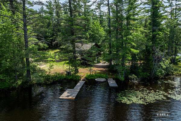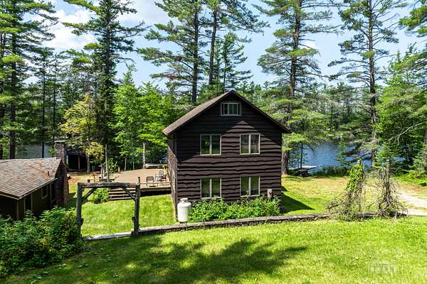 Discover a rare waterfront opportunity on beautiful Rainbow Lake. This unique piece of land gently curves into the shoreline, creating a private setting with sweeping water views in multiple directions. With 504 feet of direct waterfront the property offers an extraordinary connection to the lake and endless potential. The main home sits less than 50 feet from the water's edge, creating a true Adirondack lakefront experience and a rare vantage point. Inside, the home provides a wonderful canvas for personalization--ideal for those looking to update and add value in such an exceptional setting.