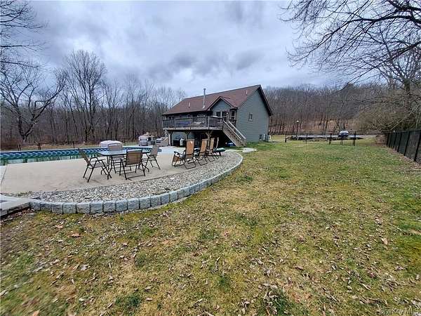 Beautiful house in excelllent condition perched high in the Mountains and very easy to access. Just off of I-84. Good well water is rare around here. Come test this well water! This very well-maintained home is ready for the next family! Large 2600+ sqft, 3+ br, 2.5 baths, laundry room, family den, extra bedroom, master bath, vaulted ceilings, two fireplaces (one wood burning), 2 flat and partially fenced acres (~ two football fields!), Features a chef's galley kitchen with black granite and modern Stainless Steel, walkout deck to built-in saline pool (partial above ground keeps low taxes) and spacious stone upgraded poolside patio, landscaping, window treatments and light fixtures included, generator & generator hookup to 200 amp panel, storage shed,2 car garage with high efficiency "Comet" furnace for winter car heating , long driveway, additional carport, city style street light with carport electric, new lifetime Anderson windows, new arch roof, new siding, new doors, and Lennox central air. Bring all your pets and give them the space to roam free. This house is ready for an inspection so you can move right in and enjoy the country life so close to everything else. Easy access to I-84 and route 17. NJ and PA border just a few minutes away for those seeking outdoor adventure.