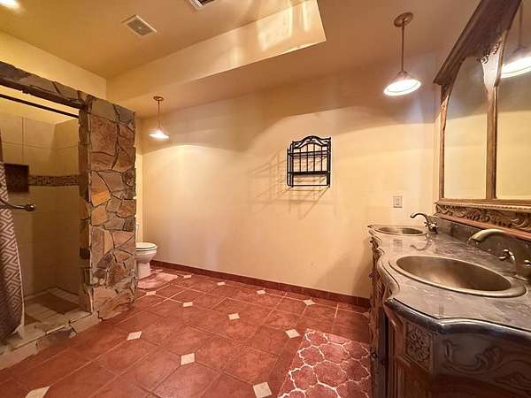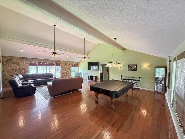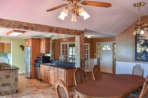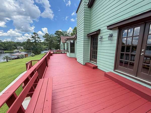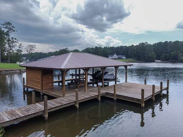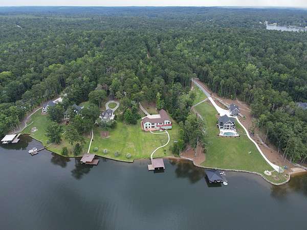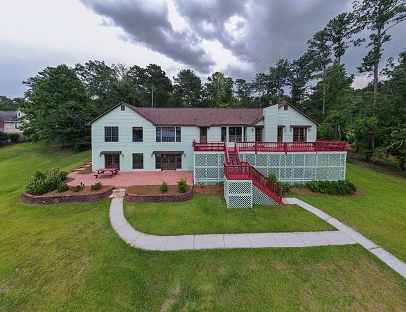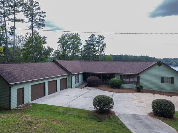 Looking for a Lake Sinclair home with acreage, privacy, a double boathouse, and located in Baldwin County in a very desirable area of the lake and 10 miles to downtown Milledgeville? Well look no further! This 4,411 square foot home is located on 3.65 acres, features 5 bedrooms (2 of which are ensuites and located on the main floor) and 4.5 baths, an office, 2 full kitchens, 2 great rooms, 2 laundry rooms, and a wood burning fireplace. Moving to the outside you will find a massive deck that is nearly half the length of the home and has built-in seating and a lower patio. There is a paved partial driveway, a 3-car garage, and paved walkways to the dock. This lot has over 100 ft of water frontage, a sandy beach area and a double boathouse with a max dock on some of the clearest water on Sinclair. There is beautiful flagstone throughout the home and a great front porch with 2 entrances. This home could easy be turned into a duplex and possibly another home built on the acreage. Lots of possibilities! Don't miss this one! Call to schedule a showing today!