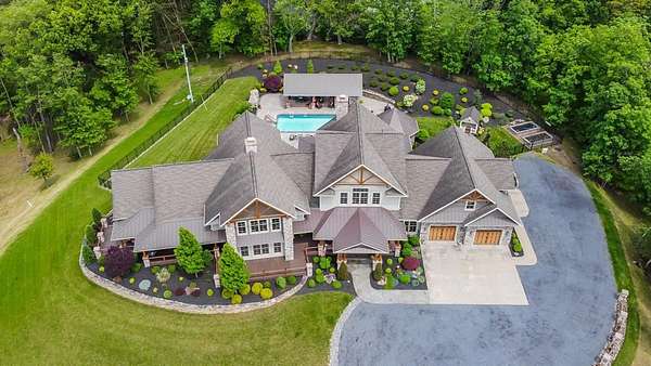 This stunning, timber frame inspired style home, built in 2016, boasts an impressive 7,400 square feet of living space w/ 4 bedrooms and 5 bathrooms. Nestled on 20.56 acres, it offers breathtaking views of the Williamsport area. With its rustic and luxurious amenities, this property is perfect for those seeking comfort and elegance in a tranquil setting. The expansive grounds provide ample opportunities for outdoor activities, while the spacious interiors are ideal for entertaining or relaxing with family. Outside there is an in-ground pool and pool house with an outdoor fireplace and pizza oven. The guest quarters offer a spacious apartment, 3 car garage and a custom butcher shop. There is a new 2-car garage with a workshop ready for your finishing touches. Do not miss this opportunity!