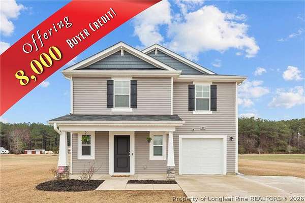$8,000 USE AS YOU CHOOSE CREDIT! A Country Beauty with design upgrades on over 1.5 acres! This move-in ready 4 bedroom, 2.5 bathroom home has all common areas downstairs, with bedrooms and laundry upstairs! Design updates include LVP flooring throughout the bottom floor, updated lighting fixtures, 2" blinds throughout, and accent walls and interior paint. Primary suite includes bathroom ensuite with double vanities, walk-in shower, and walk-in closet. Enjoy outdoor entertaining in your huge backyard with extended back patio. Upgraded french door, double-freezer refrigerator, and Washer/Dryer included! Located LESS than 30 minutes from All American ACP, and just 50 minutes from the heart of Raleigh, this rural location is both practical and great for lifestyle! USDA-loan eligible.