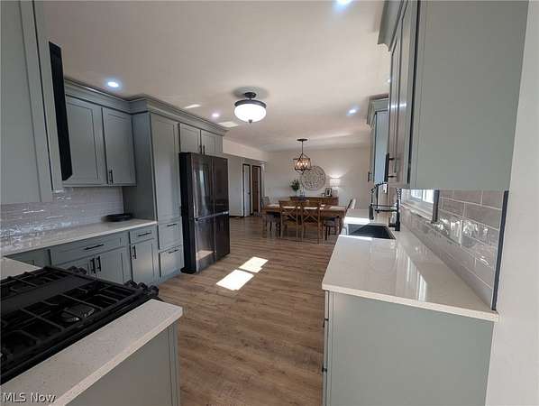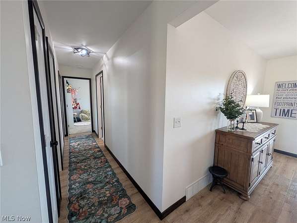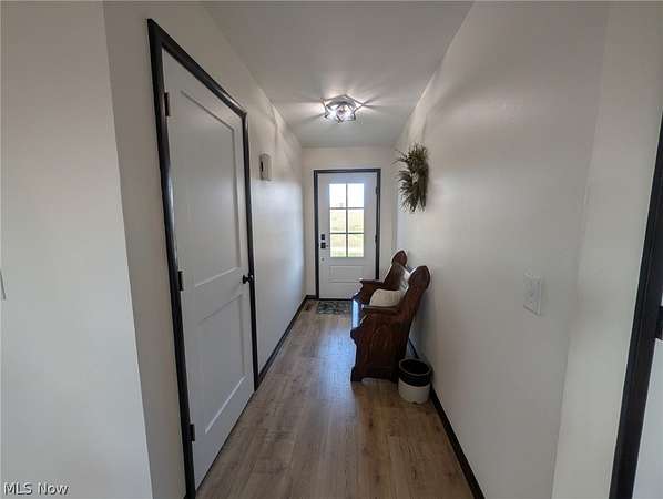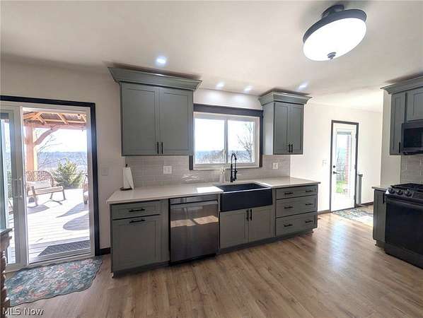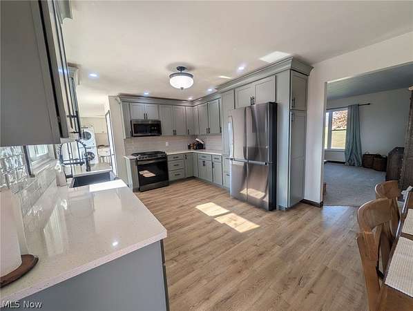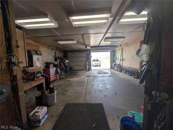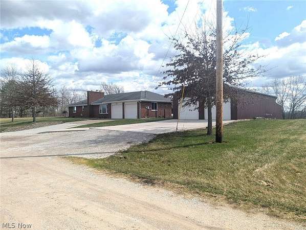 Attractively remodeled brick ranch on 1-3/4 ac lot with country and city (or small town) views from every direction. 3 beds and 2 full baths on main level with full unfinished basement including fireplace for whatever space you need to make it. This home is so light and bright with new (2019) oversized windows, 2023 gorgeous farm house style kitchen with Bonsai (color) maple Kraft Maid cabinetry, quartz counter tops, farmhouse sink, beautiful black stainless Samsung appliance package. 2017 furnace (with 1 year warranty), LVT flooring 2023, carpet 2024, Exterior doors 2021, new interior doors 2026. Half bath converted to full with walk in shower in 2020. New Mud/Laundry Room on main level 2020, New back deck 2018. All lighting replaced. 24X40 detached garage and workshop with 8' H x 9' W garage doors. Plenty of space for the toys and room to work on them too. 2016 Extra storage building for mowers, etc. Attractive black chain link fence in back yard for kids and fur babies.