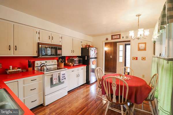 - Carpet, Ceiling Fan(s), Dining Area, Eat-In Kitchen, Wood Stove