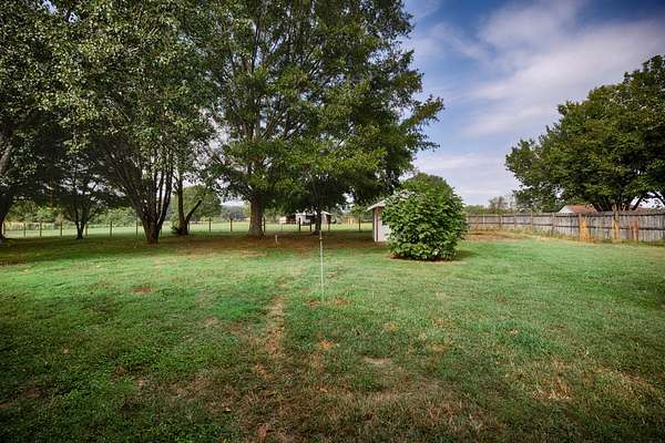This stunning property, approximately 7.3 acres in size, is located in Lincoln County and offers a diverse range of features: a 3-bedroom, 2-bathroom home with 1,876 square feet of living space, a two-car insulated detached garage, 900 sf barn, an outbuilding, and a storm shelter. The spacious screened front porch, equipped with two ceiling fans, provides a covered entryway to the home. Two of the bedrooms feature wood flooring, while the primary bedroom is fitted with durable vinyl flooring. The kitchen appliances, along with the washer and dryer, are included in the sale. At the rear of the house, there is a patio area adjacent to the detached garage. The property is already fenced, making it suitable for livestock! It includes open yard space, pasture land, and cropland, as well as peach, apple, and pecan trees. Please refer to the documents for further details. Additional acreage available.