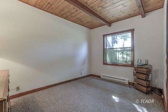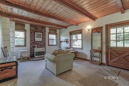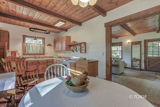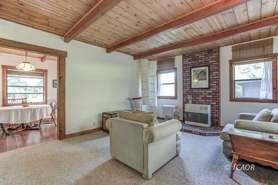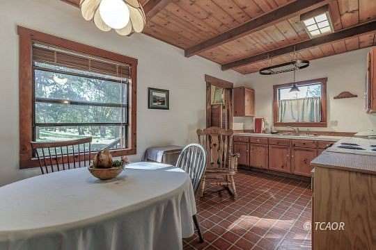 Tucked away in a peaceful 2.68-acre setting, this charming country cabin features a welcoming front porch that invites you to slow down and enjoy the quiet surroundings - ideal for morning coffee or relaxing evenings. Inside, the home features tongue-and-groove knotty pine ceilings throughout, paired with warm wood accents that create a welcoming, rustic atmosphere. The living room is cozy and full of character, while the functional eat-in kitchen is perfect for everyday living. With 2 comfortable bedrooms, 1 bathroom, and a dedicated laundry room, the layout is both practical and comfortable. Outside, you'll find a detached oversized one-car garage offering plenty of space for parking, hobbies, or extra storage, as well as a separate storage shed for all your tools and equipment. Whether you're looking for a peaceful full-time residence, a weekend retreat, or a place to enjoy country living, this property is full of potential and ready to welcome you home.
