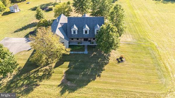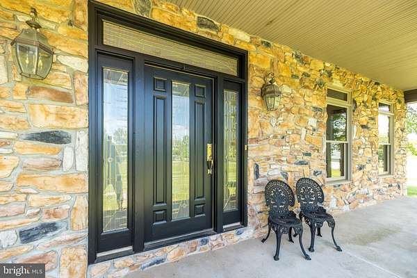 Follow the long driveway lined with flowering trees up to this very special stone front custom home situated on nearly 7 acres of pure heaven. Enjoy the nature that surrounds you. Lots of wildlife & mature plantings. The owners thoughtfully designed this beautiful home with comfort & tranquility in mind. It begins with the picture perfect front porch. Step through the gorgeous front door, inside the two story foyer welcomes you then start to take it in. Mahogany staircase, honed & filled Limestone floor, the stunning woodwork, OH MY! To the right a Living Room (currently being used as an office) & that view! To the left the Dining Room. The back of the home is all open allowing an abundance of natural light. The bright & airy Gourmet kitchen offers custom cherry cabinets & built-ins, Dacor gas stove for the chef, Asko dishwasher & stainless steel farmhouse sink for the sous chef. The views of the backyard from the kitchen & family room are so peaceful. Through the Andersen sliding glass doors is a EP Henry Bristol Stone paver patio, complete with retractable awning. To make your life even easier the Primary suite is located on the main level. This spacious sanctuary features stunning hardwood flooring, 2 walk-in closets, recessed lighting, ceiling fan, Andersen sliding glass door to back patio & a spa-like bathroom will impress with a walk-in shower, granite vanity & soak the stress of the day away in the large tub. A nicely appointed powder room & laundry area with door to side yard complete the main level. Onto the second level up the mahogany staircase & hallway you will find 2 large bedrooms (1 with a skylights) with ceiling fans & large closets (1 walk-in). The hall bathroom is equally spa-like with vaulted ceilings, a walk-in shower, relaxing jetted tub & lots of window that capture the beautiful view. Up the staircase near the Primary suite you will find a large canvas ready for its finishing touches. (see attached rendering for owners vision, plus owner will leave tile to complete the bathroom if you would like it) Some of the other highlights include Custom arches throughout, 14" I joists, shed, 2 electric panels, 9 X 8 garage doors, central vac, driveway 2022, newer 80 gallon H2O heater 2022, newer water softener, solid Fir doors throughout, 2 oil tanks, new well pump, lines & valve with 5 yr. warranty 6/2025, mini splits 6/2024, water pump in garden for easy watering (electric also run to that area if you wanted to add a greenhouse or another shed), 9 ft. ceilings on both upper & lower levels, plus extra height in basement. Current owners let a local farmer use the grass in the front & side yard to make bails that feed his animals, but can be mowed & used if prefer. Got Horses? Got Alpacas? This home is for you! (see attached Uses from the township) Truly one of a kind very special residence.