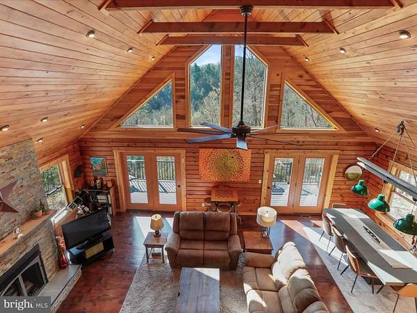 GREAT BUY!!! NOW INCLUDES 27 ACRES AT SAME PRICE! NEW SURVEY PLAT AVAILABLE! Welcome to Wild and Wonderful West Virginia-where the air is fresh, the views are breathtaking, and the lifestyle is unmatched. Whether this is your first time experiencing the charm of the Mountain State or you're finally ready to make it your home, 810 Dumpling Run Road is the kind of property that immediately enriches your life. This stunning three-level, 2,850 square foot cabin was constructed to shell-condition in 1998 then lovingly transformed in 2016 by its current owners into a mountain retreat that perfectly balances rustic elegance and modern convenience. Inside, you'll find four spacious bedrooms and two and a half beautifully finished bathrooms, as well as DECO mesh Wi-Fi for seamless connectivity. The top floor features two large, light-filled bedrooms, a shared bathroom, and a cozy loft workspace ideal for reading, remote work, or simply enjoying the view. The main level boasts an open-concept living and dining area anchored by a striking staircase built from trees harvested directly from the property. The kitchen is warm and functional with butcher block countertops, a generous sink, and an adjacent pantry. A laundry area with built-in storage and a convenient half bath round out the main floor. Step out onto the deck and prepare to be amazed by sweeping mountain views-on a clear day, you can even spot Virginia off in the distance. The lower level offers two additional spacious bedrooms, a full bathroom, a walk-out entrance, a utility room, and a workshop cleverly positioned just off the media room. This home is filled with thoughtful details, including luxury vinyl plank flooring, a new standing seam metal roof, fresh paint, and recently restored log exterior siding that's been sanded, stained, and sealed for lasting beauty. Comfort is ensured year-round with a Carrier eight-stage HVAC system that's Wi-Fi enabled, along with two mini-splits in the upstairs bedrooms with remote controls for customized climate control. Outside, there are two generous decks, a gas grill, and even a hidden pond where you can enjoy the peaceful chorus of springtime peepers. The property runs on pristine West Virginia mountain water, filtered through a five-stage whole-house system. The owned 500-gallon propane tank, which typically costs only $900 to refill every two years, supplies the gas fireplace, outside grill, kitchen cooktop, and tankless water heater. There is a 30'x 20' sq ft 2 car garage convenient for storage and or parking. This is more than just a home-it's a peaceful, private, and beautifully crafted retreat in the heart of the mountains. Whether you're looking for a full-time residence, a weekend escape, or a legacy property to share with family and friends, 810 Dumpling Run Road is ready to welcome you home. Included in sale: 1982 Ford 1700 4-wheel drive diesel tractor, 2013 John Deere 625i. Located only 2 hours from Dulles Airport, 45 minutes from Wardensville, WV and 20 minutes to the nearest town with medical services, restaurants, shopping and conveniences stores. Make an appointment today! *Additionally check out MLS# WVHD2002688* New Septic Field in 2025, 12 circuit emergency generator included, most furnishings convey!