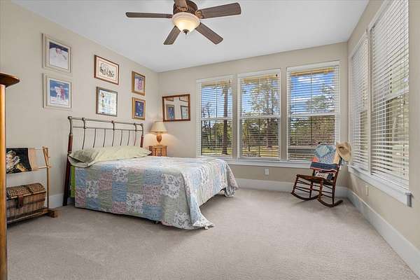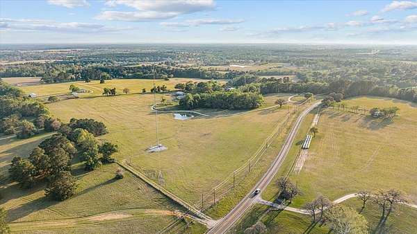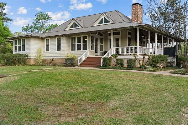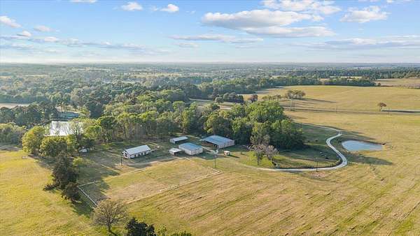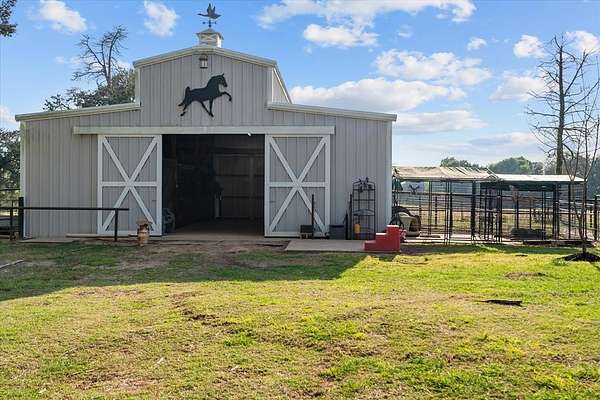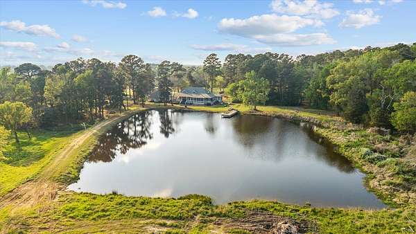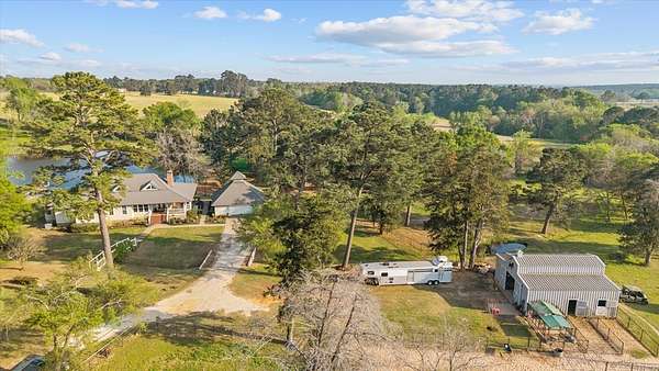 52.515-acre East Texas ranch with equestrian facilities,guest residence, multiple shops, & three ponds located along the East Texas Forest Trails.The property is fenced &cross-fenced & features a mix of mature timber & productive coastal Bermuda pasture.The main residence,Tideland Haven House,is an award-winning Southern Living design by Historical Concepts,LLC,designed to maximize natural light, views, & outdoor living.The family room connects to the foyer,kitchen, & dining alcove w/ direct access to the wraparound porch.French doors with transoms bring natural light throughout the home.The primary suite is located at the rear of the home & includes a screened porch.A home office can serve as a sitting room or third bedroom,while the second bedroom features an ensuite bath.The porch also includes a wheelchair accessible lift.A detached guest residence offers an efficiency kitchen,living area,bedroom, loft sleeping space,oversized shower, & enclosed two-car garage.Ranch improvements include a horse stable,hay barn,two large shops, & an equipment shed. Three ponds provide fishing & recreation,w/mature trees adding privacy.Schedule your showing today before someone else calls it home