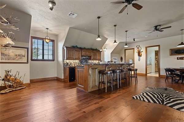 Less than 5 miles east of I-35 in Carter County, OK is this breathtaking estate-style ranch was designed for those who love to entertain, relax, and enjoy wide-open spaces in style. Nestled among the rolling hills just outside Ardmore, this extraordinary luxury ranch estate sets on 100 Acres and offers 6-bedroom + bunk room, 5-bath, 5 fireplaces, The chef's kitchen features a Sub-Zero refrigerator, double ovens, 6-burner gas stove, microwave, wine closet, ice maker and wine cooler. The primary suite is a retreat of its own, boasting two oversized walk-in closets, an elegant master bath with tankless hot water, fireplace in bathroom and bedroom, sauna, exercise room, a private office and cedar lined storm room. Step outside to your personal oasis featuring a covered patio with built-in grill, Gunite pool with rock waterfall, slide & hot tub. Upstairs offers a game room, additional bedrooms, bathroom, bunkroom, fireplace and balcony. Additional highlights include central vac, finished attic storage, 6 HVAC units with dual Rheem Halo purifiers, French drains, sprinklers, 40X60 barn with corral, and 3 stocked ponds. Perfect for entertaining or peaceful ranch living--an Oklahoma dream all its own.