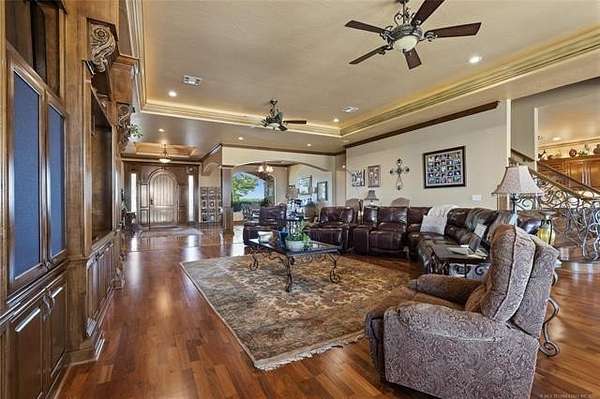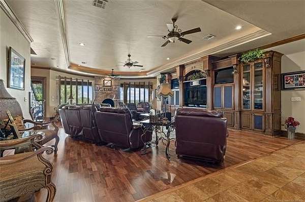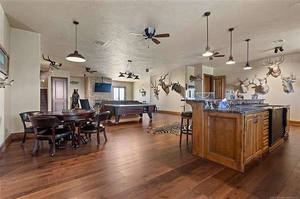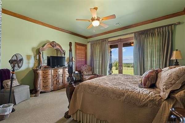 Less than 5 miles east of I-35 in Carter County, OK is this breathtaking estate-style ranch was designed for those who love to entertain, relax, and enjoy wide-open spaces in style. Nestled among the rolling hills just outside Ardmore, this extraordinary luxury ranch estate sets on 100 Acres and offers 6-bedroom + bunk room, 5-bath, 5 fireplaces, The chef's kitchen features a Sub-Zero refrigerator, double ovens, 6-burner gas stove, microwave, wine closet, ice maker and wine cooler. The primary suite is a retreat of its own, boasting two oversized walk-in closets, an elegant master bath with tankless hot water, fireplace in bathroom and bedroom, sauna, exercise room, a private office and cedar lined storm room. Step outside to your personal oasis featuring a covered patio with built-in grill, Gunite pool with rock waterfall, slide & hot tub. Upstairs offers a game room, additional bedrooms, bathroom, bunkroom, fireplace and balcony. Additional highlights include central vac, finished attic storage, 6 HVAC units with dual Rheem Halo purifiers, French drains, sprinklers, 40X60 barn with corral, and 3 stocked ponds. Perfect for entertaining or peaceful ranch living-an Oklahoma dream all its own.