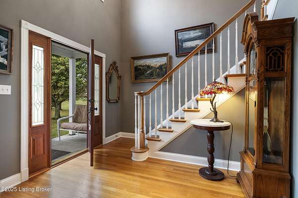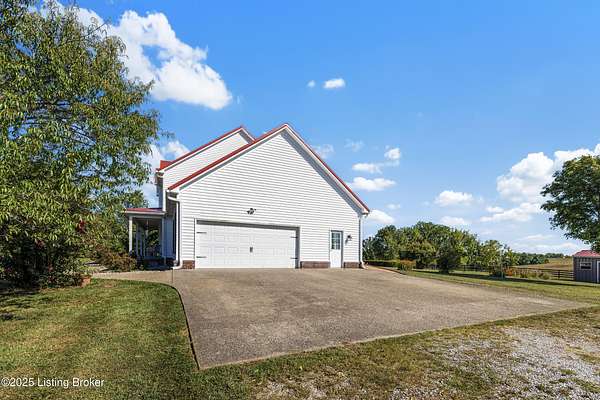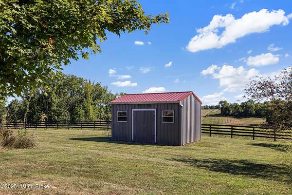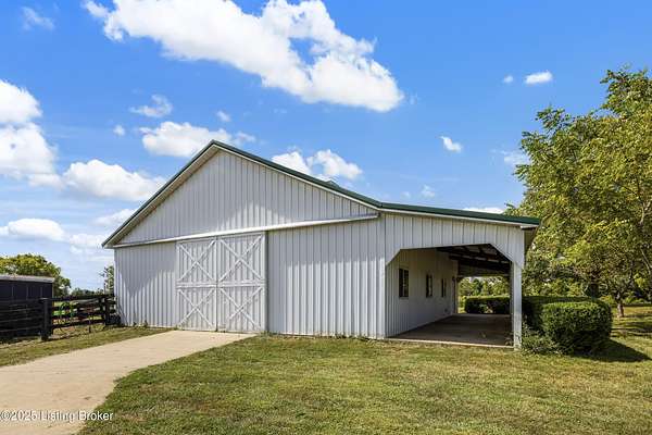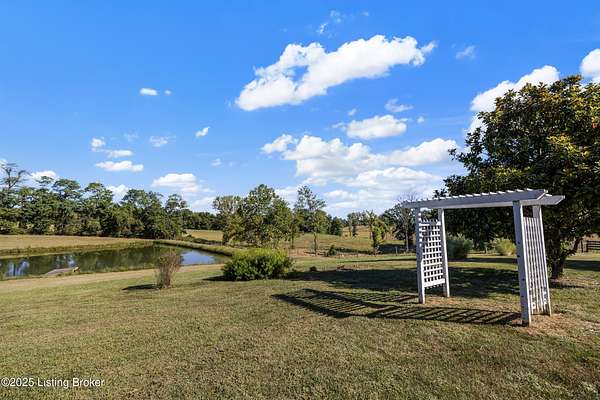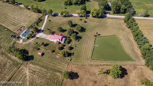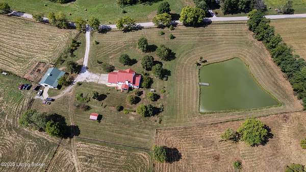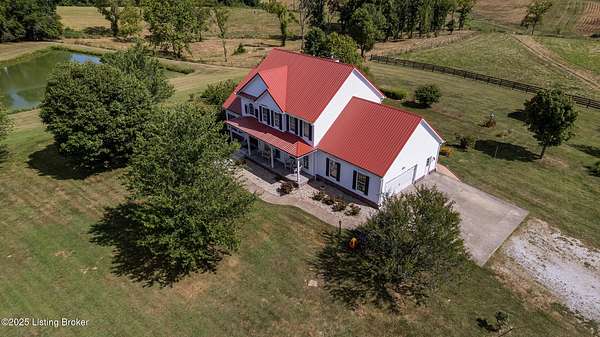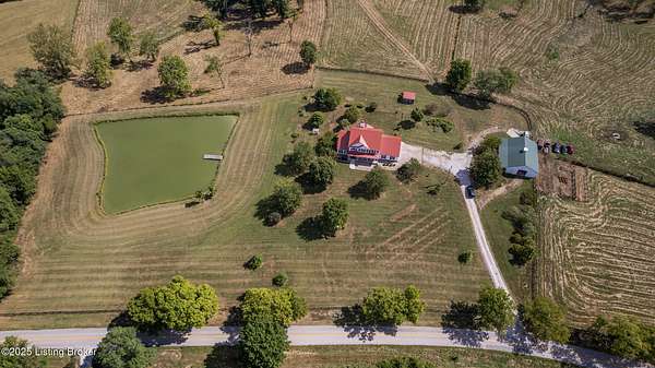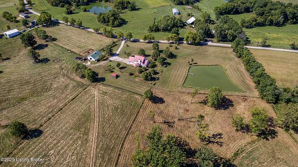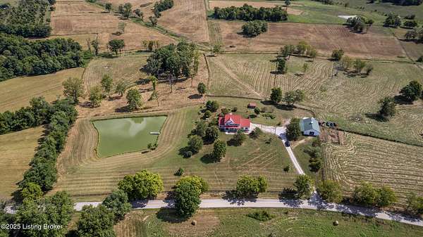 Welcome to Hillsboro Rd and experience 78 acres of Kentucky farmland, featuring fenced pastures, a 1,737.6 sq ft barn, 4 electric waterers, a stocked pond, and shaded groves-fully equipped for agricultural use or a private retreat. This exceptional property combines privacy, beauty, and functionality-an opportunity rarely available in today's market. Ideal for livestock, equestrian use, or a private estate with potential agricultural tax advantages. Zoning allows for additional flexibility, including the potential to add a mobile home with an independent septic system. There may also be an opportunity for a minor subplat to create an additional deeded parcel-buyer to verify all requirements with local planning and zoning authorities. The home offers an open floor plan with hardwood floors throughout, an inviting foyer, a formal dining room, and a gracious open-concept kitchen appointed with granite counters, custom cabinetry, and dual pantries. The adjoining mudroom with exterior access makes everyday living easy when coming in from the garage. A screened-in porch and pergola overlook the gardens, creating the perfect setting for outdoor meals or quiet mornings. Upstairs, you'll find three light-filled bedrooms with crown molding, walk-in closets, and floor-to-ceiling windows. Beyond the home, the land is well-appointed with $40,000 worth of cattle fencing, 4 electric waterers throughout the 8 pastures, a 1,737.6 sq ft barn, a stocked pond, shaded groves, and neighboring croplands providing the backdrop for peaceful country living. Conveniently located just off I-71, this property offers easy access to LaGrange, Crestwood, Prospect, and Goshen, while also being within reach of Frankfort, Versailles, and Midway. Local highlights include small-town festivals and the charm of Campbellsburg and Bedford just minutes away. Property is approximately 30 minutes from Prospect and 30 minutes from Frankfort. BY THE NUMBERS: 78 Acres | Productive Kentucky farmland --- 8 Fenced Pastures | Designed for rotation and livestock management --- $40,000+ Cattle Fencing | Established infrastructure already in place ---- 4 Electric Waterers | Servicing multiple pasture zones --- 1,737.6 Sq Ft Barn | Functional for storage, livestock, or equipment --- 1 Stocked Pond | Water source + recreational value --- Multiple Shaded Groves | Natural shelter for livestock --- Tillable & Grazing Mix | Flexibility for farm, equestrian, or income use --- Zoning Flexibility | Potential for additional dwelling or parcel (buyer to verify) --- 30 Minutes to Prospect | --- 30 Minutes to Frankfort | Central to regional employment hubs --- Immediate I-71 Access | Efficient connectivity to Louisville & beyond-- Strategic Positioning: Multiple use paths - farm, equestrian, multi-generational, or investment hold | Zoning + land flexibility - rare ability to adapt property over time | Infrastructure already in place - reduces upfront capital significantly | Acreage + location combination - long-term value protection.