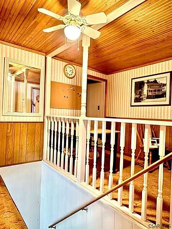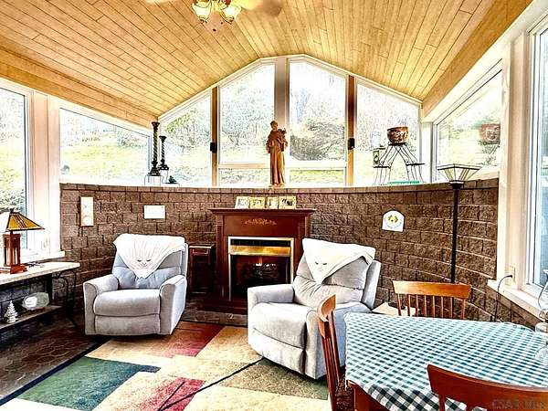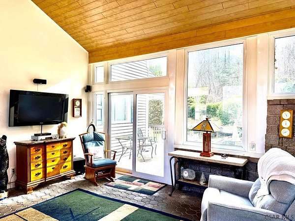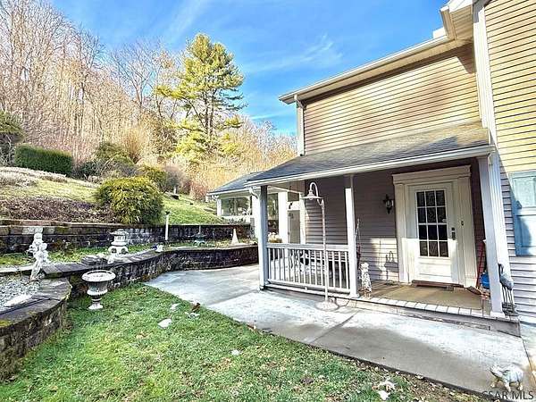 Very large & unique 2-story home located at end of no-thru street offering privacy & space rarely found at this price point. The home provides over 2,100 sq ft of finished heated living space + add'l rooms used daily but not included in square footage due to lack of heat. 2 parcels included: the homesite plus 3.54 acres across street mostly wooded & steep offering natural surroundings. Exterior features include vinyl siding, large composite front porch, glass double entry doors, side patio w/concrete pavers, meticulous landscaping & one-car covered carport. Across the street is a detached 2 car garage (4 car tandem) with electric. The home features a 30 x 12 living room with double-sided propane fireplace, formal dining room, kitchen w/abundant cabinetry & walk-in pantry, 2nd family room w/stunning custom architectural window, office w/exterior entrance, powder room & large addition w/cathedral wood ceilings, 3 sets of French doors, brick pavers & fireplace. 5 bedrooms & updated bath.