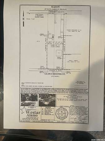 Est $1,932/moOwn a piece of San Antonio History! Build a new home, in a historic neighborhood, and get the best of all aspects. Rare opportunity to purchase a vacant lot, in a super central location. Lot has a city street on both sides of the lot, with tons of possibilities with this oversized lot. Build a primary residence that fronts Mason Street and build a secondary residence, or oversized workshop/garage, with access from Glouchester Street. Lots of options with such a large lot, and access from two different streets; all in Government Hill! See survey attached and in photos.