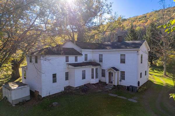 Welcome to this incredible RIVERFRONT estate formerly known as Chestnut Grove, set on a freshly-paved town road containing 3.76 picturesque acres just outside the village of Deposit, NY. Built in 1847 by the prominent Alvin Devereux, the iconic Greek Revival is a fitting home for such a piece of property. The house is complemented by gorgeous bay windows, high ceilings, and some wide-plank wood floors. Outside, the house is flanked by massive oak trees, plenty of open yard space for gardening, a generous portion of frontage on the West Branch Delaware River, and an old shed-cottage building that could be knocked down or possibly revitalized. All this just minutes away from HUNDREDS of acres of STATE LAND! While the house needs some work, one can't help but picture the magnificent potential of this home being fully restored. A short term rental, family compound, primary or secondary home are just a few of the many possibilities this property has to offer. This could just be the one you've been waiting for!