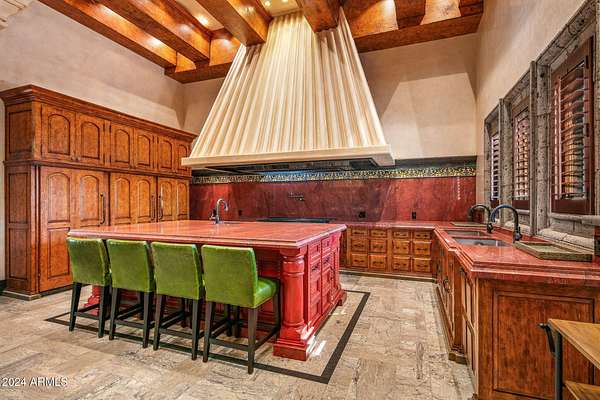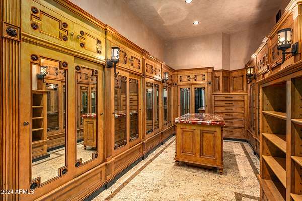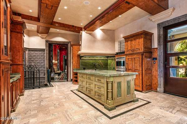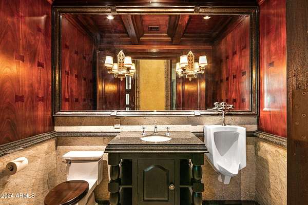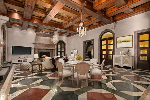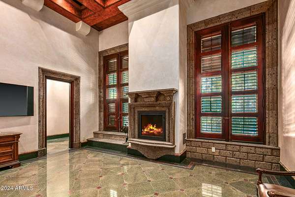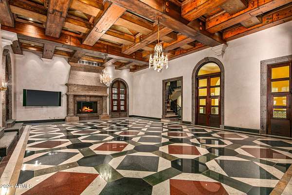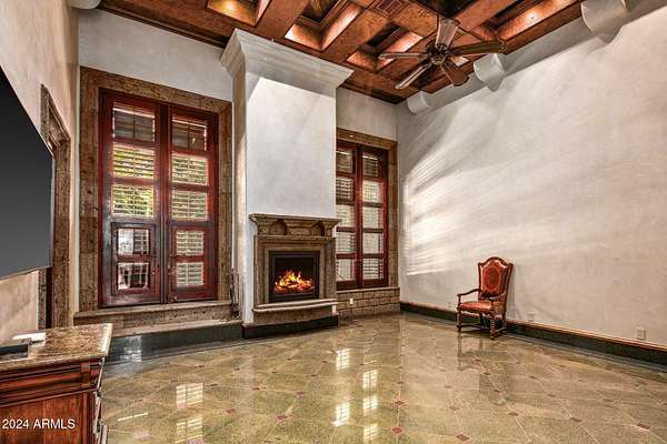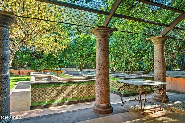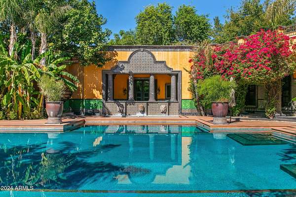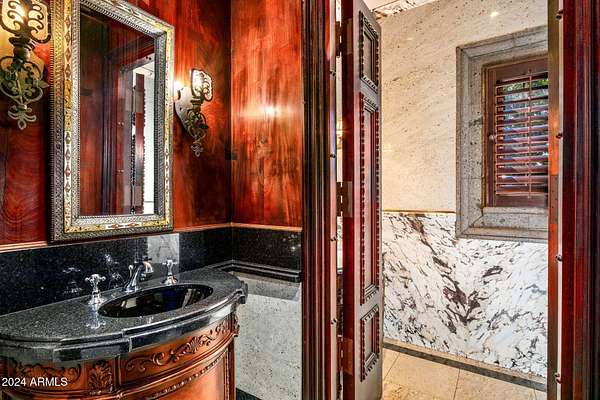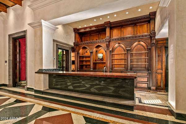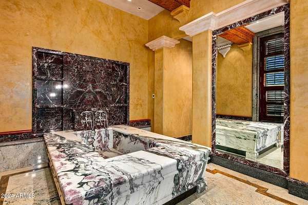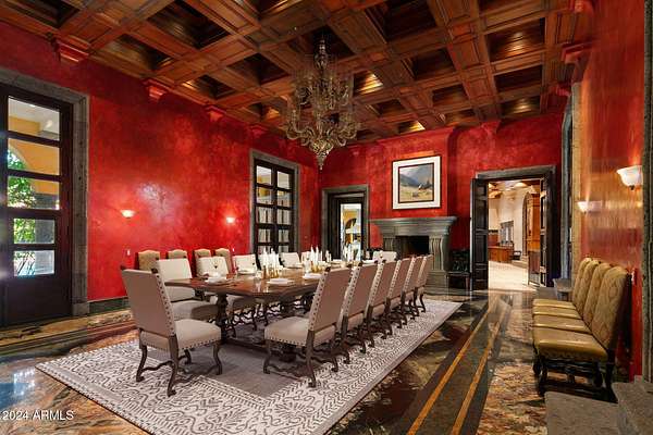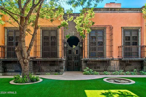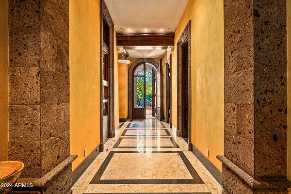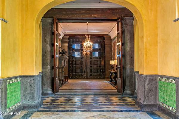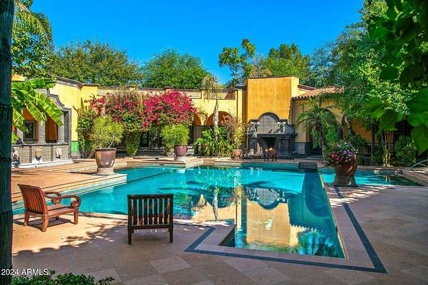Transport yourself to a bygone era of grandeur with this luxurious 17,912 SF estate, set in the heart of Paradise Valley. Designed by world-renowned architect Juan Sandoval, this architectural masterpiece spans 2+ acres, featuring 5 opulent bedroom suites and 11 baths, each designed as a private retreat, featuring fireproof walls, wet bars, and exquisite finishes. Upon entering the estate, the attention to detail is immediately apparent with a custom 13' Honduran Mahogany entry door, flanked by lush courtyards adorned with fountains and over 600 rose bushes. The estate's central courtyards lead to a stunning 60'x60' mosaic-tiled saltwater pool and spa, offering a serene focal point for outdoor living. This residence combines Old World elegance with modern conveniences, all within ... a secured 45,000 SF perimeter. Inside, the residence is a showcase of artisanal mastery. Venetian plaster, marble, and granite adorn every surface, while custom wood coffered ceilings and ironwork, created on-site, add layers of bespoke detail. The kitchen is a chef's dream with top-of-the-line appliances, including four Sub-Zero refrigerators, five KitchenAid dishwashers, and a 60" Wolf gas cooktop. Beyond, the estate features expansive living and entertaining spaces, including a 10,000-square-foot arcade, a game room with a walk-in bar, and an unfinished basement ready to accommodate whatever your heart desires. The estate is also equipped with cutting-edge technology, including Lutron home automation, hidden HVAC vents, and custom cabinetry throughout. The attention to detail extends to the smallest touches, such as stone kick plates under every cabinet and handcrafted Canterra stone accents. This is more than a homeit's a living work of art perfected by artisans over a 9-year period, blending historic design with modern luxury and security, offering an unparalleled lifestyle for those who appreciate the finest things in life. This could be your own private Royal Palms and it must be seen and experienced to be believed!