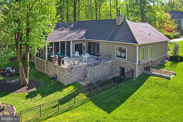 Set on over three private acres and thoughtfully custom-built, this exceptional ranch-style home represents one of the most desirable settings you'll find in Frederick County. Combining refined design, quality craftsmanship, and true one-level living, the property offers a rare balance of privacy, comfort, and natural beauty. Energy-efficient features, including geothermal systems, further enhance the home's forward-thinking design. Inside, the main level is finished with hardwood flooring throughout and designed to accommodate both everyday living and effortless entertaining. The open-concept kitchen is a standout, featuring premium appliances such as a wall oven, six-burner cooktop, abundant cabinetry, and a generous center island. It flows naturally into a casual dining space, which opens to a stunning screened porch, perfect for enjoying the outdoors in comfort. The adjacent family room features a gas fireplace as its focal point and extends out to a flagstone deck that overlooks the beautifully landscaped grounds, creating a seamless connection between indoor and outdoor living. The primary suite is privately situated in its own wing of the home and showcases expansive windows on two sides, framing some of the best views on the property. The spa-inspired en-suite bath includes a large walk-in shower, dual vanity, and elegant tile work, along with a dedicated dressing area and custom closet systems. On the opposite wing, you'll find two additional bedrooms and a beautifully appointed hall bath with upscale finishes. Additional main-level spaces include a formal dining room overlooking the front yard, a comfortable sitting room ideal for reading or relaxing, as well as a laundry room, mudroom, and powder room. The lower level spans the full footprint of the home and offers exceptional flexibility, with potential for expanded living space, recreation areas, additional bathroom, or additional bedrooms. With a six-bedroom perc in place, egress windows, rough-in plumbing, and walk-out access to the side yard, the layout is already well-suited for future finishing. High ceilings add to the sense of openness and possibility. The home includes an oversized garage with epoxy-coated floors, which is a sought after ammenity. low maintenance and a vast space for storage, hobbies, and utility! Carefully maintained and beautifully executed, this home reflects true pride of ownership throughout. With its thoughtful layout, quality finishes, and effortless livability, it offers a rare opportunity to own a property that feels both refined and comfortable. Recent updates include professionally designed landscaping enhanced by a comprehensive outdoor lighting package, creating a beautifully illuminated setting after sunset. Custom-style black aluminum fence surrounds the rear yard, offering a classic architectural detail that blends seamlessly with the outdoor setting. A freshly painted interior paired with custom-designed molding details throughout creates a polished and cohesive aesthetic. Ideally located just minutes from downtown Frederick while still enjoying the benefit of no city taxes, this is a special offering in an exceptional setting. A home like this doesn't come along often!