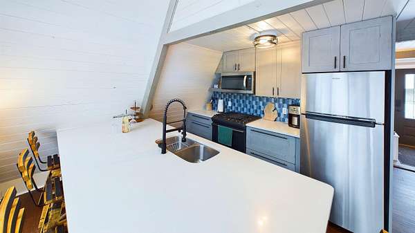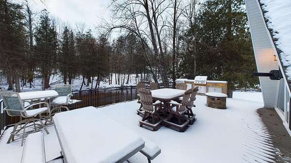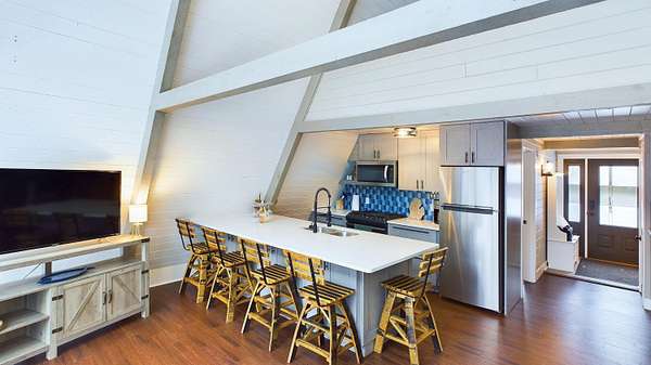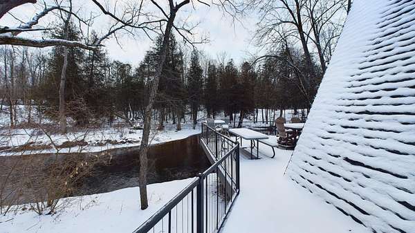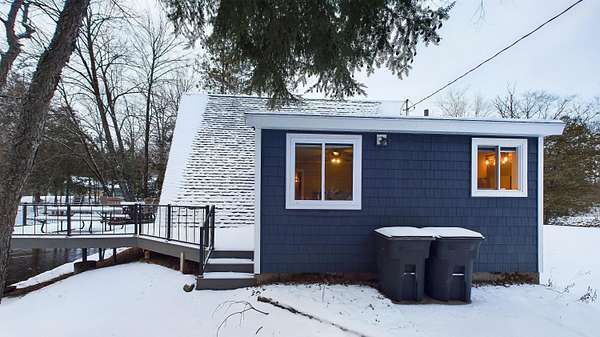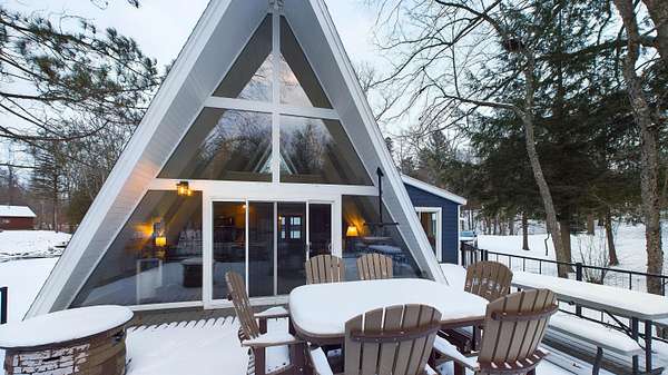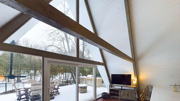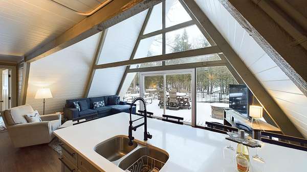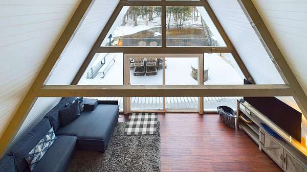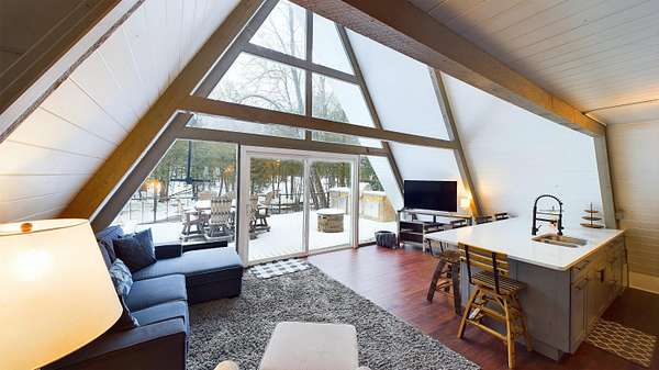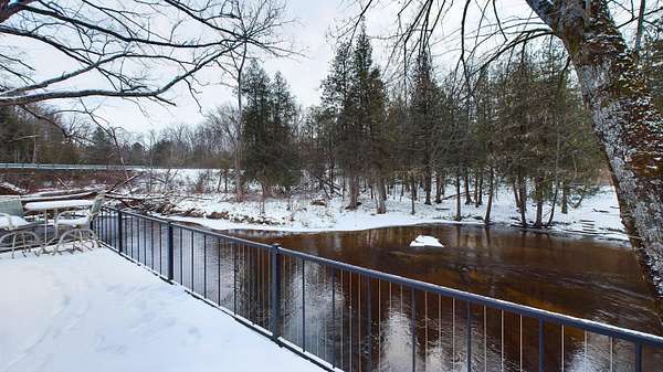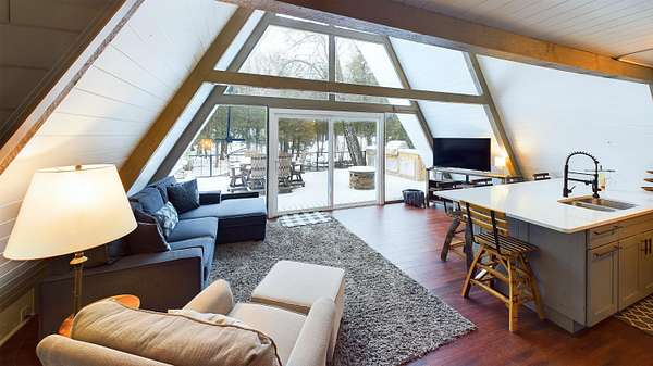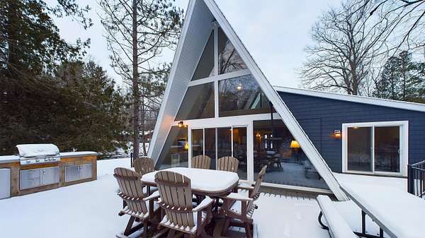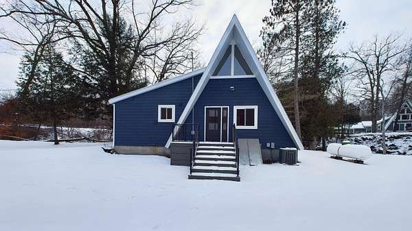 Nestled on over an acre of picturesque frontage along the Pere Marquette River, this fully remodeled A-frame cottage offers a serene retreat in a private, secluded setting. Boasting 2 bedrooms, 2 full bathrooms, and a versatile loft space, this charming home is ideal for year-round living or a peaceful getaway. The interior has been thoughtfully updated, including new stainless steel appliances, blending modern convenience with rustic charm. Step outside to enjoy the natural beauty surrounding you, with the river at your doorstep and 100 acres of state land just across the way. A detached 2-car garage provides ample storage for vehicles or recreational gear. Furnishings are negotiable, making this move-in-ready home an even easier choice for those seeking a tranquil lifestyle.