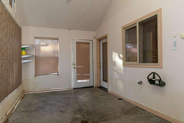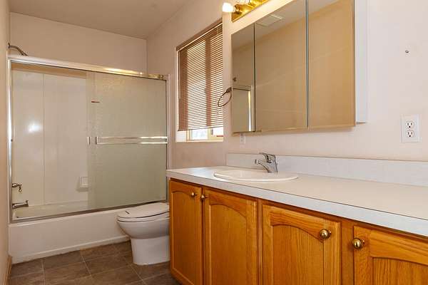 - Built-In Features, Ceiling Fan(s), Double Vanity, Enclosed Toilet(s), Fiberglass Stall Shower, Kitchen Island, Laminate Counters, Open Floorplan, Shower/Tub Combo, Vaulted Ceiling(s)