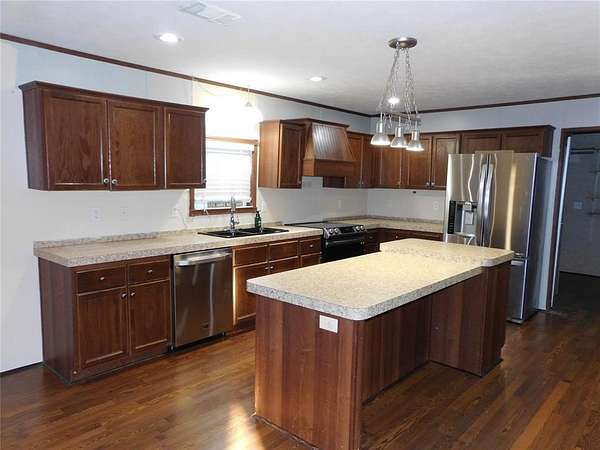 Just a few minutes from town and you can have all the delight of living in the Country. 7.249 Acres is big when it is full of beautiful trees on all kinds. The property is fenced for horses or a calf or two. Perfect place to raise an ag project. The home is a 5-bedroom 3 full bath manufactured home bought new and added to the land in 2014. Some of the features of the 2040 sq. ft. home is a kitchen with countertop space galore. The eating bar with seating space on both sides will enhance conversation time. Built in appliances stay along with the ss refrigerator. The primary suite is a large room with walk-in closet and bathroom. Separate shower and garden tub as well as double sinks in this private space. Everyone can have their pick of bedrooms. One jack & jill bath and a hall bath with tub and shower. Sunrise and sunsets will be extra special on the covered front porch with room for a rocker or two. Get ready for a large utility room with pantry space that most of us only dream of. New metal roof was put on in the Summer of 2024. There is a tin barn at the front by the entry and a barn near the pasture as well as a storage building and shed. The stock pond is just a short walk from the house, a great place for animals, skipping rocks or just enjoying the view. The location outside of the City limits is about 30 miles North of Waco and 70 miles South of the Metroplex. John Deere tractor may be included with full price offer.