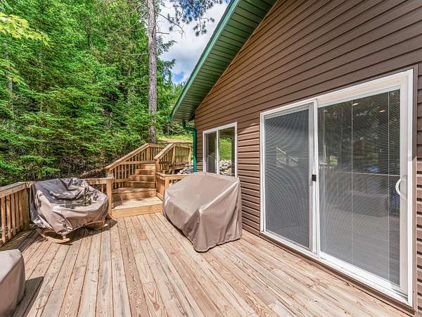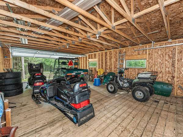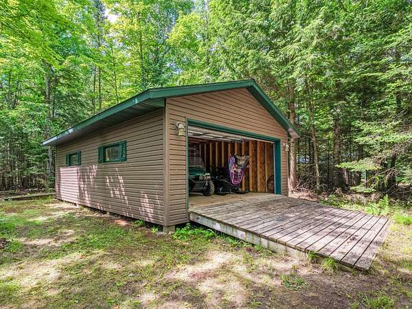 SAND LAKE: Sugar Camp Chain of 5 Lakes opportunity! Approx. 3 acres wooded land with 250' south-facing sand shoreline on Sand Lake, gentle slope. Arguably the most sought after lake on this chain, with a recently built "Gazebo" beach house at the water! You'll love the screened windows, vaulted wood ceiling, easy care laminate floor and vinyl exterior, open sun deck, and 1/2 bath for your seasonal recreation and gatherings! A snack bar w/fridge handles your refreshments, and there's power for lights, music, FUN! Next to the beach house, find an elevated building site for your new home, just 75' from the shore. Add in an oversize 4 car detached garage w/power, a 30x20 drive-thru snowmobile/ATV garage w/power, quality high end pier, and beautiful landscaping, and here's your perfect spot in the North! Nothing else like it on the market. Subject to land division and new survey. Adjacent to this property is a luxe Barndominium, also available for a complete package (MLS#216666). Inquire!
