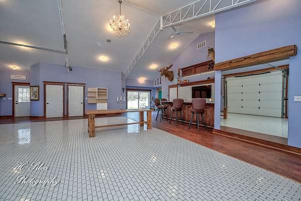 Luxury Barndominium On Private Scenic Acreage. Welcome Home To This Luxurious And Versatile Barndominium Nestled Within A Serene, Wooded Setting, Perfectly Combining Elegant Living Spaces And Functional Versatility. This Exceptional Property Offers A Unique Lifestyle Opportunity, Masterfully Blending Residential Comfort With Spacious, Hobbyist-Friendly Areas. This Stunning Barndominium Features A Spacious Open-Concept Layout, Including A Beautifully Tiled Recreational Area Ideal For Entertaining, Relaxing, Or Showcasing Your Luxury Vehicles Or Favorite Hobby Cars. The Gleaming White Tiled Flooring Offers A Striking Contrast To Rich Hardwood Accents And Custom Finishes. This Impressive Rec Room Features High Vaulted Ceilings, Professional-Grade Overhead Garage Doors, And A Marble-Topped Entertainment Bar, Rich Custom Cabinetry, Built-In Shelving, Comfortable Seating Areas, And A Library Ladder Providing Easy Access To Upper Storage Areas. The Main Living Area Draws You In With Its Dramatic Vaulted Ceilings, Intricate Custom Millwork, Detailed Architectural Accents, And Beautiful Hardwood Flooring Throughout. Elegant Recessed Lighting Highlights The Bold Blue Walls And Crisp White Trim, Creating A Vibrant Yet Sophisticated Ambiance. Built-In Shelving Offers Ample Space To Showcase Cherished Items Or Books, Enhancing The Room's Charm And Functionality. The Chef's Kitchen Is Designed With Entertaining In Mind, Boasting Premium Finishes Including Marble Countertops, Custom White Cabinetry, Stainless Steel Appliances, And A Beautifully Tiled Backsplash. Conveniently Located Adjacent To The Living Room, The Kitchen Provides Both Elegance And Practicality For Everyday Living. Step Into The Den, Richly Adorned With Custom Wood Paneling And Ample Windows That Fill The Space With Natural Light. Sliding Glass Doors Lead You Outside, Making This Room Ideal For Quiet Reflection Or Comfortable Home Office Use. Relax And Unwind In The Luxurious Primary Suite Featuring Dramatic Vaulted Ceilings, Custom Millwork, And An Inviting Fireplace With A Beautifully Crafted Wood Mantle. Plush Carpeting And Neutral Tones Create A Calm And Elegant Setting, While Velvet Curtains Add An Extra Layer Of Sophistication. The Attached Luxury Bath Offers Spa-Like Comfort With High-End Engineered Hickory Flooring, Elegant Coffered Wood Ceilings, And Intricate Tile Work Throughout. A Spacious Marble Vanity With Premium Cabinetry And Polished Chrome Fixtures Complements The Glass-Enclosed, Walk-In Shower Featuring Dual Showerheads And A Built-In Bench Seat. The Home Is Further Enhanced By Premium Mechanical Upgrades, Including A Tankless Water Heater, High-End Water Sanitizer System (Negotiable), Whole-House Central Vac System, And Dual-Zone HVAC With Separate Units For The Living Spaces And Rec Room/Garage Area-Perfectly Balancing Comfort And Efficiency. Step Outside To Your Private Deck, Perfectly Positioned For Serene Moments Or Lively Gatherings. Enjoy Captivating Sunset Views And Tranquil Surroundings On Your Expansive Deck, Complemented By Comfortable Seating Areas. The Private Backyard Features Mature Trees, Fenced Areas Ideal For Pets, And Charming Landscaping, Creating A Peaceful, Scenic Retreat. Lot Size: 8.5 Acres, Approximately 5 Acres Wooded. The Property Also Includes A Charming Rustic Gazebo, Tranquil Walking Paths, And A Winding Gravel Driveway That Enhances The Home's Country-Chic Ambiance While Remaining Conveniently Close To Local Amenities. Whether You're Looking For A Space To Indulge Your Passions, Entertain With Flair, Or Simply Enjoy Refined Country Living, This Barndominium Offers Unmatched Flexibility, Comfort, And Luxury. Schedule Your Private Tour Today And Discover This Distinctive Property!
