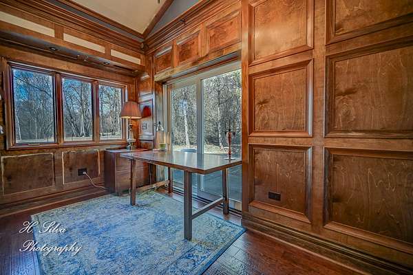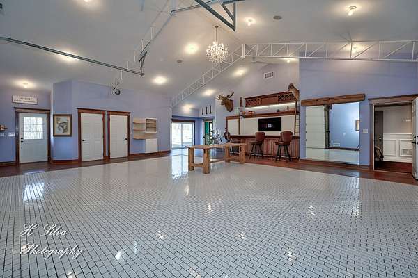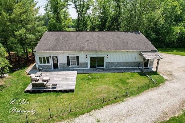 Luxury Barndominium On Private Scenic Acreage. Welcome Home To This Luxurious And Versatile Barndominium Nestled Within A Serene, Wooded Setting, Perfectly Combining Elegant Living Spaces And Functional Versatility. This Exceptional Property Offers A Unique Lifestyle Opportunity, Masterfully Blending Residential Comfort With Spacious, Hobbyist-Friendly Areas. This Stunning Barndominium Features A Spacious Open-Concept Layout, Including A Beautifully Tiled Recreational Area Ideal For Entertaining, Relaxing, Or Showcasing Your Luxury Vehicles Or Favorite Hobby Cars. The Gleaming White Tiled Flooring Offers A Striking Contrast To Rich Hardwood Accents And Custom Finishes. This Impressive Rec Room Features High Vaulted Ceilings, Professional-Grade Overhead Garage Doors, And A Marble-Topped Entertainment Bar, Rich Custom Cabinetry, Built-In Shelving, Comfortable Seating Areas, And A Library Ladder Providing Easy Access To Upper Storage Areas. The Main Living Area Draws You In With Its Dramatic Vaulted Ceilings, Intricate Custom Millwork, Detailed Architectural Accents, And Beautiful Hardwood Flooring Throughout. Elegant Recessed Lighting Highlights The Bold Blue Walls And Crisp White Trim, Creating A Vibrant Yet Sophisticated Ambiance. Built-In Shelving Offers Ample Space To Showcase Cherished Items Or Books, Enhancing The Room's Charm And Functionality. The Chef's Kitchen Is Designed With Entertaining In Mind, Boasting Premium Finishes Including Marble Countertops, Custom White Cabinetry, Stainless Steel Appliances, And A Beautifully Tiled Backsplash. Conveniently Located Adjacent To The Living Room, The Kitchen Provides Both Elegance And Practicality For Everyday Living. Step Into The Den, Richly Adorned With Custom Wood Paneling And Ample Windows That Fill The Space With Natural Light. Sliding Glass Doors Lead You Outside, Making This Room Ideal For Quiet Reflection Or Comfortable Home Office Use. Relax And Unwind In The Luxurious Primary Suite Featuring Dramatic Vaulted Ceilings, Custom Millwork, And An Inviting Fireplace With A Beautifully Crafted Wood Mantle. Plush Carpeting And Neutral Tones Create A Calm And Elegant Setting, While Velvet Curtains Add An Extra Layer Of Sophistication. The Attached Luxury Bath Offers Spa-Like Comfort With High-End Engineered Hickory Flooring, Elegant Coffered Wood Ceilings, And Intricate Tile Work Throughout. A Spacious Marble Vanity With Premium Cabinetry And Polished Chrome Fixtures Complements The Glass-Enclosed, Walk-In Shower Featuring Dual Showerheads And A Built-In Bench Seat. The Home Is Further Enhanced By Premium Mechanical Upgrades, Including A Tankless Water Heater, High-End Water Sanitizer System (Negotiable), Whole-House Central Vac System, And Dual-Zone HVAC With Separate Units For The Living Spaces And Rec Room/Garage Area-Perfectly Balancing Comfort And Efficiency. Step Outside To Your Private Deck, Perfectly Positioned For Serene Moments Or Lively Gatherings. Enjoy Captivating Sunset Views And Tranquil Surroundings On Your Expansive Deck, Complemented By Comfortable Seating Areas. The Private Backyard Features Mature Trees, Fenced Areas Ideal For Pets, And Charming Landscaping, Creating A Peaceful, Scenic Retreat. Lot Size: 8.5 Acres, Approximately 5 Acres Wooded. The Property Also Includes A Charming Rustic Gazebo, Tranquil Walking Paths, And A Winding Gravel Driveway That Enhances The Home's Country-Chic Ambiance While Remaining Conveniently Close To Local Amenities. Whether You're Looking For A Space To Indulge Your Passions, Entertain With Flair, Or Simply Enjoy Refined Country Living, This Barndominium Offers Unmatched Flexibility, Comfort, And Luxury. Schedule Your Private Tour Today And Discover This Distinctive Property!
