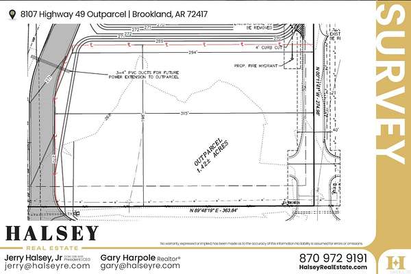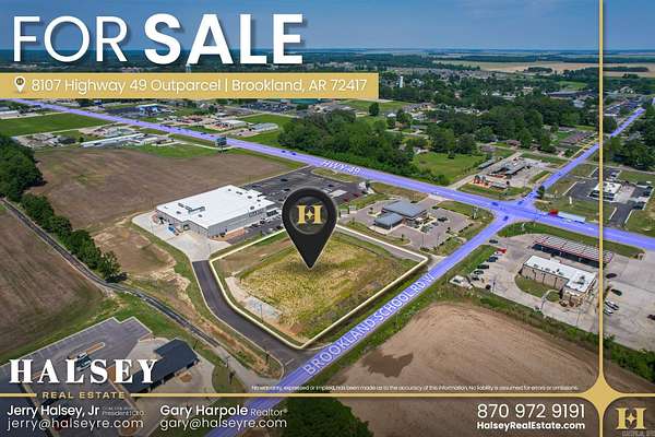 This commercial outparcel at 8107 Highway 49, offers a prime opportunity for businesses seeking a high-visibility location at the entrance of the rapidly growing Brookland community. Situated along the Hwy 49, this property holds high-visibility to the 20,000 cars passing daily. Strategicly surrounded by several exciting new developments this property offers an ideal spot for businesses looking to capitalize on the area's rapid growth. The property is ideally suited for retail, restaurants, professional services, and more. This location is highly advantageous; not only is it located on the direct route to Brookland School District, one of the fastest-growing public school districts in the region, but it is surrounded by new developments and established businesses like Harps Food Stores, McDonald's, Sonic, and First Community Bank. The property benefits from strong local and regional traffic enhancing the potential for business success in this location.Additionally, this property offers quick access to both Jonesboro and Paragould, two thriving cities in Northeast Arkansas. A short 10-minute drive brings you to Jonesboro's Hilltop District.