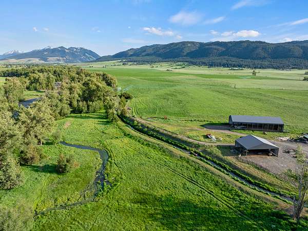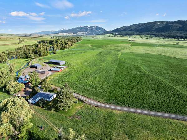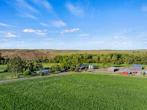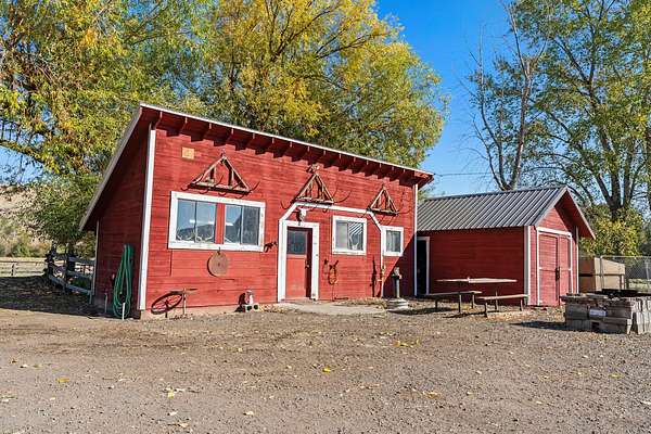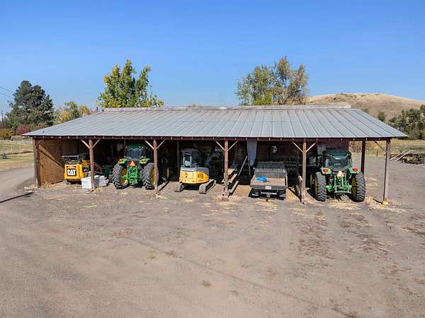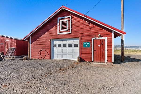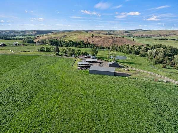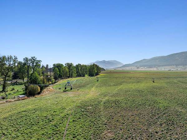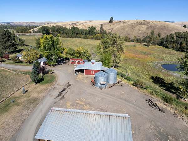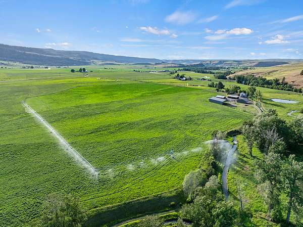 The Baker Ranch is a ranch for sale in Wallowa County that covers approximately 198.82 acres, offering a combination of irrigated farmland and grazing pasture. The ranch is equipped with an extensive infrastructure to support agricultural operations, including a 3,211 square foot manufactured home, a detached garage, and a variety of outbuildings. These include multiple barns, sheds, grain bins, and a large hay shed, providing storage for hay and equipment.