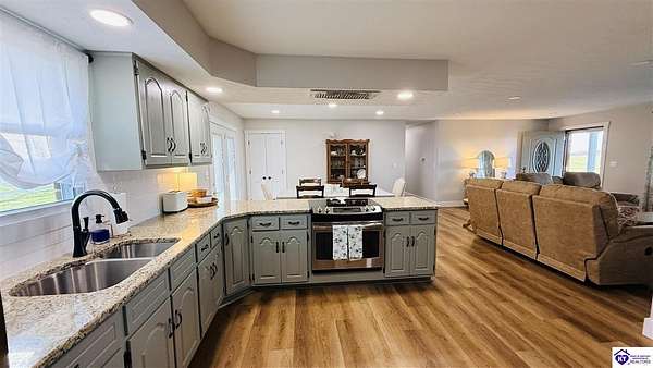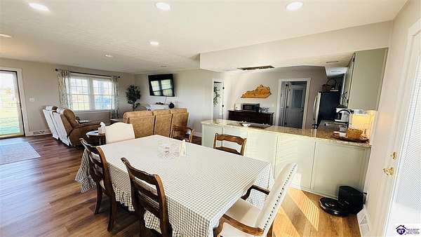 HOBBY FARM This beautifully completely remodeled 3-bedroom, 2-bath home offers modern comfort in a peaceful country setting on 3.68 acres. Inside, you’ll find an open-concept living area that creates a spacious and inviting atmosphere, perfect for both everyday living and entertaining. The home features 1,552 sq ft of finished living space along with a full unfinished basement (1,440 sq ft) offering excellent potential for additional living space, storage, or a workshop. A large laundry room located just off the kitchen adds convenience and functionality. The property is serviced by county water, while also featuring a working well and well pump. The well currently supplies water to the barns but is also connected to the home, allowing the house to operate on well water if desired. Outside, the property is well-equipped for farm, hobby farm, or livestock use. Improvements include two large barns, one with multiple livestock stalls and another currently used for tobacco storage, a small livestock barn, and an old milk parlor, adding to the property's agricultural character and functionality. The land offers a large spacious yard, partial fencing, and a scenic pond, providing both practicality and beauty. With room to roam, functional outbuildings, and a quiet country atmosphere, this property offers the perfect blend of rural living with modern updates.