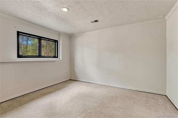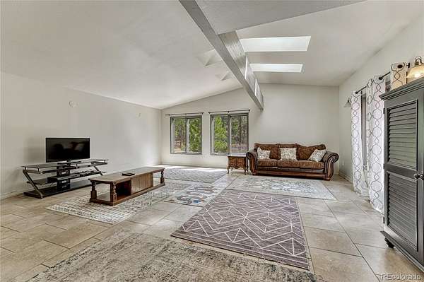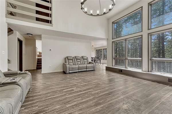 Outdoor living is enhanced by a large multi-level deck and balcony, ideal for enjoying the surrounding scenery and wildlife. Conveniently located approximately 13 minutes from highway access, with an easy commute to DTC, Parker, and Castle Rock.