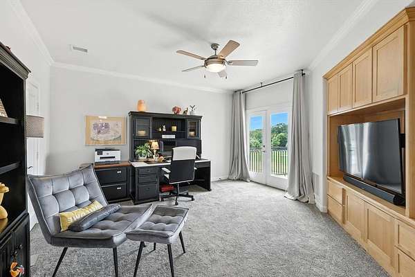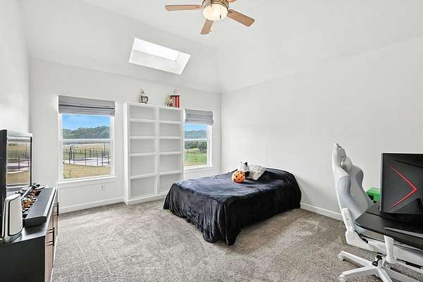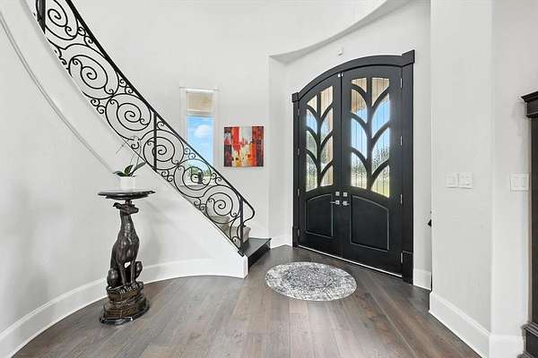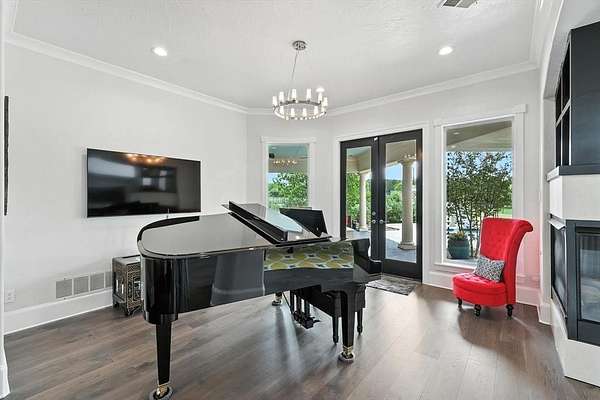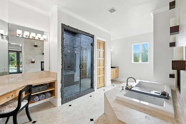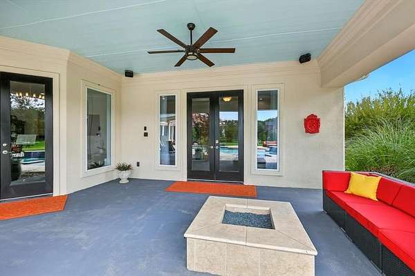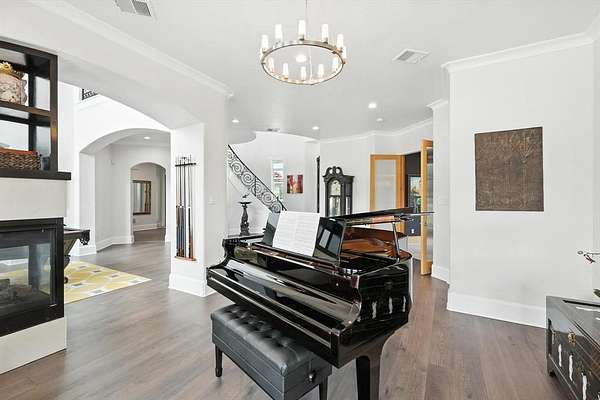 The home offers multigenerational flexibility, with the primary suite, executive study, multiple living areas, media room, and private casita all on the main level. Natural light floods through the walls of windows, and dual staircases—including a handcrafted iron showpiece—add elegance. Five en suite bedrooms with oversized closets offer space, plus a kids’ retreat and a Juliet balcony. The chef’s kitchen features a six-burner range with griddle, double ovens, and oversized built-in Sub Zero refrigeration. The media room includes theater seating and a bar. The primary suite offers dual fireplaces, a spa bath with a waterfall jacuzzi, plus outdoor access. A large flex space above the portico offers versatility. Car enthusiasts will love the four-car garage, extra parking pad, and portico for showcasing vehicles. The casita provides a private suite with a full bath. Outdoors, enjoy the infinity-edge pool, spa, waterfalls, outdoor kitchen, and full sports court. The equestrian lifestyle awaits with ample space for horses and direct access to riding trails. Horses are permitted, with community riding trails offering countryside charm just minutes from top schools, dining, and shopping. Seller just replaced the roof, gutters & Garage doors.
