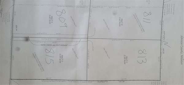 From Whiteman AFB take 23 hwy south. Turn right/west on Y hwy. Turn left/south onto 921st rd. Road will go right only on 600th rd. Follw to property on the right. Tracts 809, 811, and 815 are all for sale.