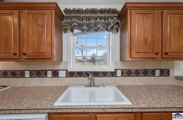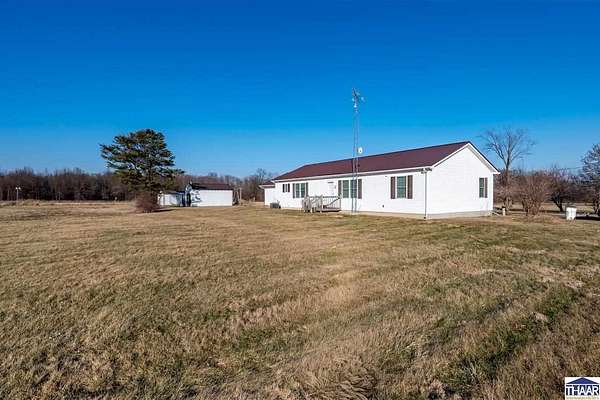 Beautiful 3-bedroom, 2-full-bath ranch home built in 2009, situated on a stunning 20-acre property. This land has been in the same family for generations. The split floor plan offers privacy, with a spacious primary suite featuring a large walk-in closet and a private ensuite bath. Convenient main-level laundry adds to the home's functionality. The full, unfinished basement provides endless potential for additional living space or storage. Outside, the property truly shines with a large three-bay barn, previously used for goats and chickens--perfect for hobby farming or livestock. Enjoy the serene pond located at the back of the property, along with approximately 8 tillable acres and 8 wooded acres, offering a beautiful balance of open land and natural privacy.