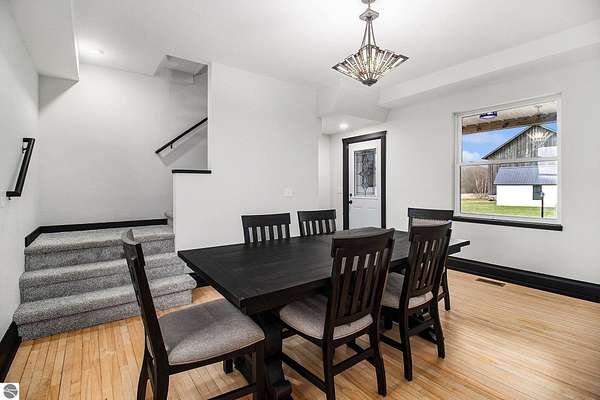 Classic Country Farmhouse on 60 Acres of Rolling Land. Welcome to this beautifully renewed farmhouse, where timeless character and modern comfort come together in perfect balance. Set on 60 acres of gently rolling countryside, this property offers a peaceful mix of mature hardwoods, open pastures, and a spring-fed pond--ideal for those who value open space, natural beauty, and the rewards of country living. Inside, the home's warm and inviting feel begins with the original hardwood floors, carefully restored to preserve their enduring charm. The main level features spacious living and dining areas, high ceilings, and large windows that fill the home with soft, natural light. The thoughtfully redesigned kitchen showcases custom cabinetry and quartz countertops, offering a practical yet elegant workspace for daily living. A main-floor office provides flexibility for family or business use. Upstairs, three comfortable bedrooms and a versatile bonus area create space for restful nights, creative projects, or family gatherings. A cozy lounge adjacent to the largest bedroom offers a quiet corner to unwind. Outside, a classic two-story barn stands ready for animals, storage, or workshops. Recently updated with a new roof, improved lighting, and reinforced concrete walls, it's built to last and ready for a variety of uses. The land's open fields, tree lines, and water source make it well-suited for gardens, livestock, or simply enjoying a peaceful rural lifestyle surrounded by nature. This remarkable property offers a chance to live close to the land while enjoying the comfort of a carefully restored farmhouse--a place where tradition, simplicity, and modern living exist in harmony.