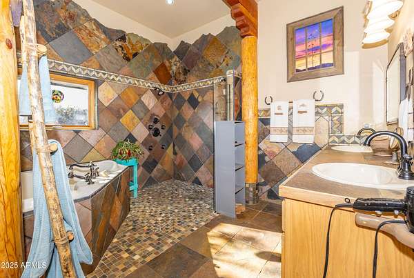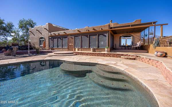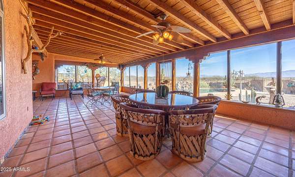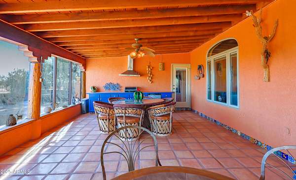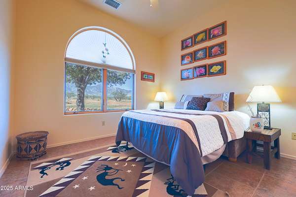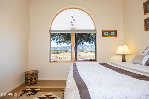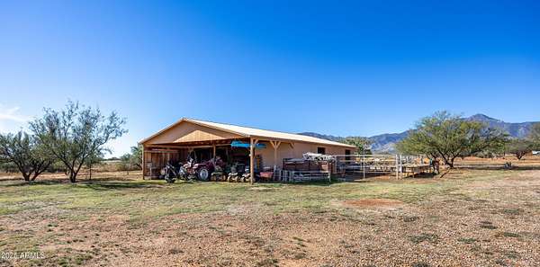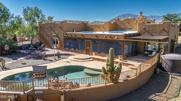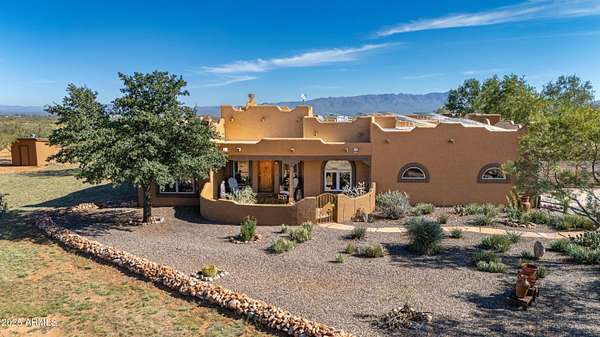 Location.Location,Location. Terrific views in every direction on 8 acres of beautiful land. Custom home with fresh paint and recoated roof. Office/library with views of the Huachucas. Walkin closet in primary with extra storage and more storage all through the home. High ceilings with beautiful wood finish,Open floor plan out to over sized screened in patio with built in grill and fridge on wall of cabinets. Over looking the pool with waterfall. There is an outdoor grill and dining area with a comfortable sitting area. Kitchen is custom cabinets and trash compacter. Breezway barn has 2 stalls with tack room and storage and covered hay area on oneside. Workshop and storage on the other side with open area for projects and covered parking for equipment out of the weather. Pella-Anderson