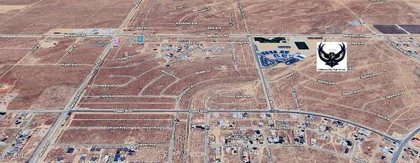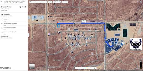 Start at California City High School at 8567 Raven Way, California City, CA 93505 then go north on Rusche Blvd. Make the first left on Mendiburu Rd, pass 83rd St until you get to 81st St. Then turn around. The lot is the 2nd lot on the south side.