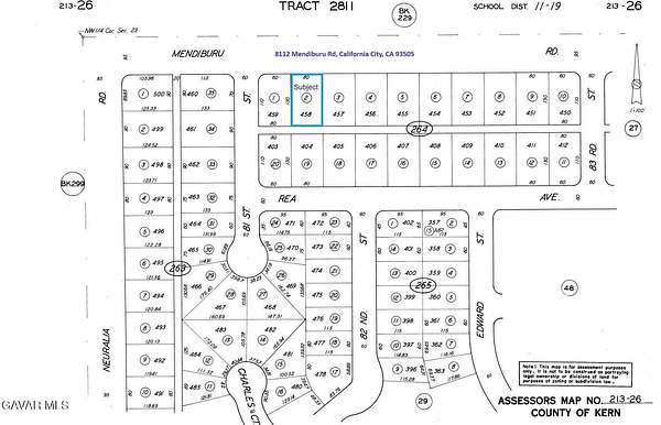 8112 Mendiburu Rd, California City, CA 93505APN: 213-264-02For sale is an almost 11,000 (.247 of an acre) sq feet R1/R2 duplex lot in the newest area of California City. This lot can be used for a single family home or a duplex. This lot features walking distance to the California City High School, a quite and newer neighborhood, new recently paved frontage road, electric, water, and sewer in the street. Buyer to verify if sewer is in the street or by septic. The front of the lot has a new street, thus the pictures do not show it if you look on google maps. But when you pass by the lot you will see that it is newly paved road in the front. Priced to sell!GPS Coordinates: 35.140297, -117.984120