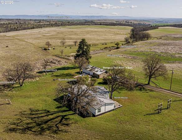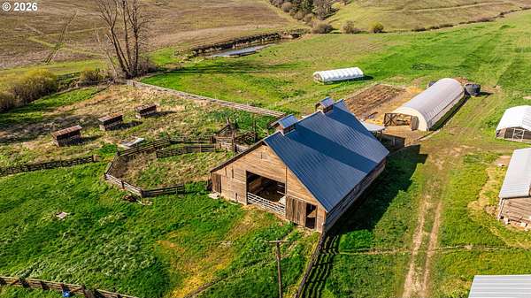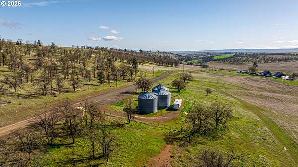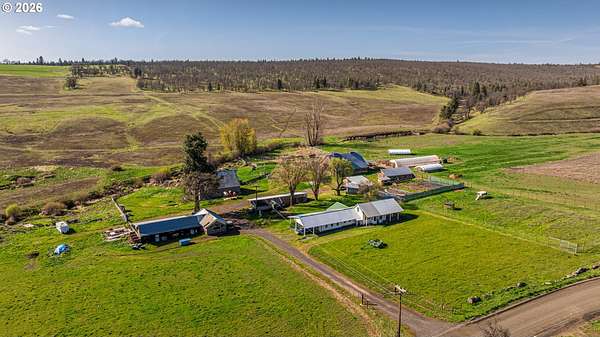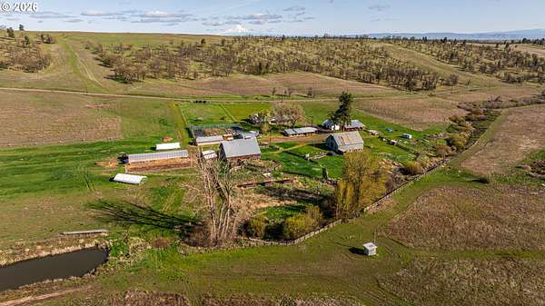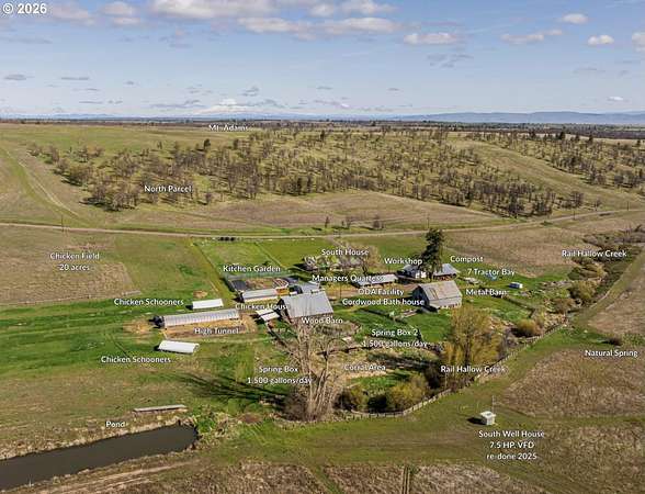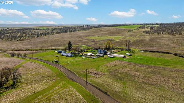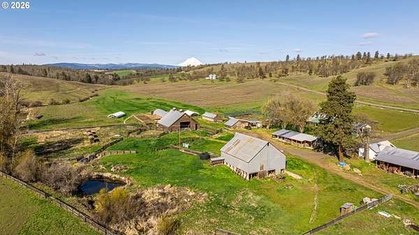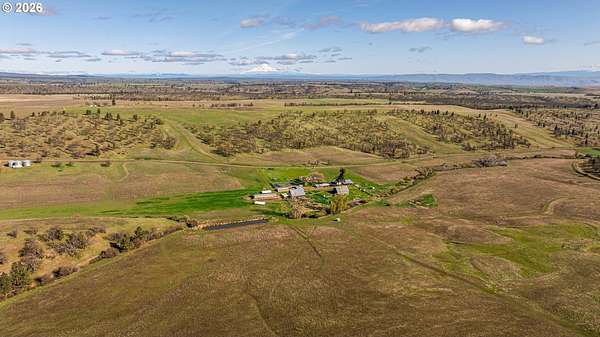 A once-in-a-generation opportunity to acquire one of Oregon's most extraordinary working farms - one already doing the work.Situated between the eastern slopes of Mt. Hood and the Columbia River Gorge, Carbon Farm spans 1,462 acres of rolling hills, native oak savannahs, open pasture, and managed forest. Farmed continuously for over 100 years and actively converted from conventional wheat production into a functioning regenerative operation built around a single idea: farming carbon back into the soil. Carbon Farm was purpose-built around regenerative practices that sequester carbon, rebuild soil biology, and integrate animals with crops to create natural fertility cycles. This isn't a vision - it's an active, multi-enterprise farm producing beyond-organic pastured poultry and cattle, market garden crops, and microgreens, with a licensed ODA poultry processing facility on site. The land is the foundation: 700+ acres of pasture, 700+ acres of native oak woodland and savannah, 616 acres of water rights, seasonal ponds, and irrigation canals. Thriving elk, deer, and wild turkey populations make this equally compelling for the serious hunter or conservation-minded buyer, with established archery and rifle seasons and a strong harvest history. Infrastructure is in place and fully operational. The historic farmstead includes a farmhouse, multiple barns, outbuildings, bunkhouses, and greenhouses. Full electric and high-speed internet on site. A 3-bed, 2-bath manufactured home on the north end offers additional living quarters or employee housing. Existing guest accommodations - farm stays, bunkhouses, and event infrastructure provide a natural foundation for agritourism, corporate retreats, or experiential programs already in motion. 22 miles from Mt. Hood, 20 miles from the Columbia River. A compelling impact investment, conservation acquisition, or generational land holding - with a regenerative operation already underway.