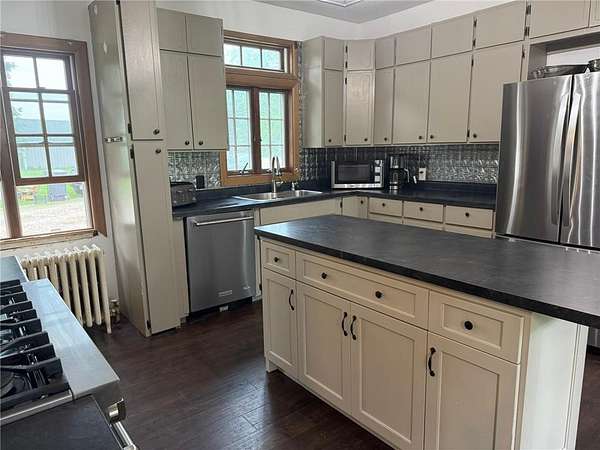 Charming and traditional two story home featuring 4 bedrooms and 1 3/4 bathrooms located on 12 acres just outside of Ellendale! The main level features the primary bedroom with a walk-in closet as well as convenient main floor laundry. This home also features natural woodwork, hardwood flooring, as well as a wood-burning stove in the living room. The modern kitchen boasts new stainless steel appliances and a center island. Additionally, the property offers a spacious 900 square foot attached two car garage, additional detached garage, pole barn, and chicken house. Schedule your showing today!