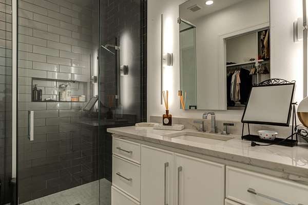 - Breakfast Bar, Built-In Features, Ceiling Fan(s), Double Vanity, High Speed Internet, His and Hers Closets, Kitchen Island, Pantry, Quartz Counters, Smart Thermostat, Soaking Tub, Solid Surface Counters, Sound System, Stone Counters, Walk-In Closet(s), Wired For Sound