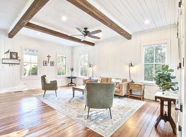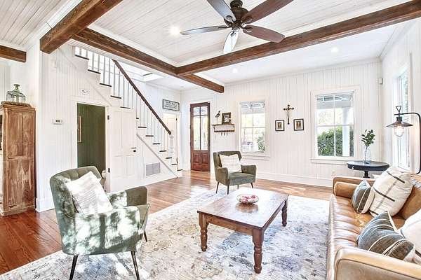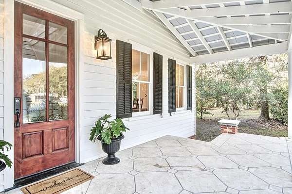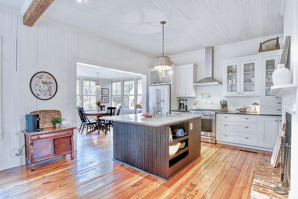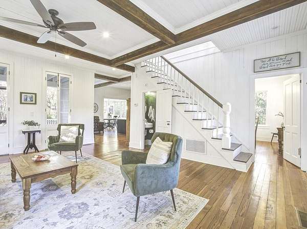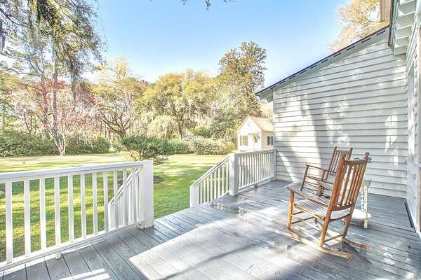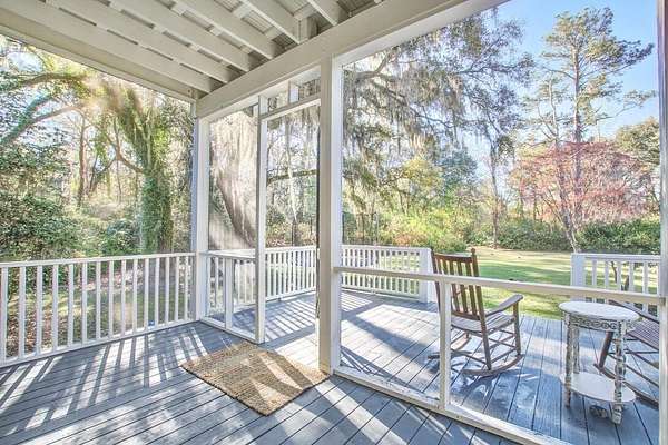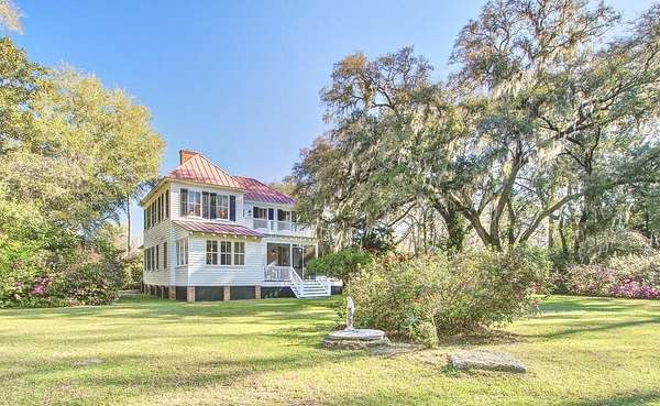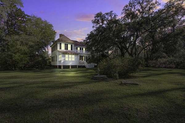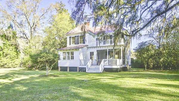 Beautifully restored historic home on 2 gorgeous acres covered in heirloom Camellias, Azaleas and Dogwoods surrounded by majestic Grand Oaks. Enjoy these picturesque Lowcountry vistas from one of the 4 outdoor living spaces, including a screened-in porch and an expansive second story deck, perfect for stargazing! Originally built as a hunting lodge in 1893, it was also the longtime residence of the local Postmaster as well as being used as a dormitory for teachers working at the nearby school. Carefully reimagined in 2017, upgrades were made to modernize the home while also preserving the original charm and character. Restored antique heart pine floors extend throughout, complementing the original bead board paneled walls, antique doors and 3 original fireplaces.The sunny family room features high ceilings, beautiful exposed wooden beams and towering piazza doors leading to the screened porch overlooking the lush and private backyard. The modern chef's kitchen sits between the formal dining room and sunny breakfast area and features Carrara marble countertops, crisp white cabinets, gourmet stainless steel appliances, over the stove pot filler and a large kitchen island with a porcelain farm sink and extra storage. The dining room is home to one of the original fireplaces flanked by an original built cabinet in with antique glass doors, perfect for displaying family heirlooms. The primary suite boasts a handsome fireplace, two closets and a spacious en suite bath with a tiled walk-in shower and antique claw foot tub sourced from the home's original bathroom. The second full bath is spacious and also features a large tiled walk in shower and double sink vanity. The detached "kitchen house" currently serves as an art studio, but would work well as a home office, kids playroom or extra storage space. Just 30 minutes to Charleston and 20 minutes to Edisto Beach, Adams Run is the perfect place for those looking to be far away but close enough. One of the last remaining Piggly Wiggly grocery stores is just 10 minutes down the road, but Instacart also delivers! Own a little piece of history with a little peace and quiet and truly enjoy the natural beauty of the Lowcountry!