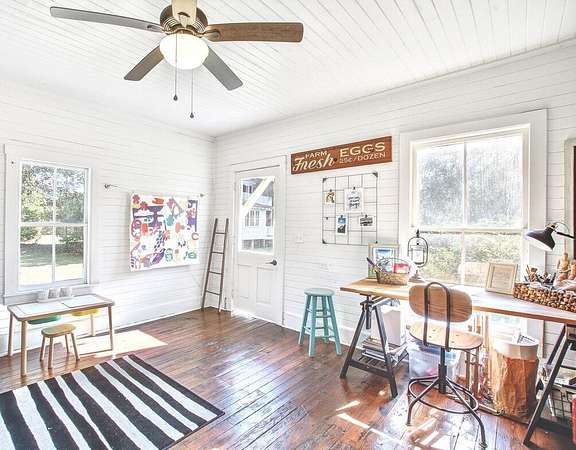 - Beamed Ceilings, Ceiling Fan(s), Eat-In Kitchen, Family, High Ceilings, Kitchen Island, Office, Separate Dining