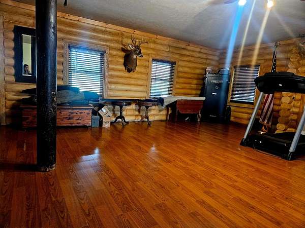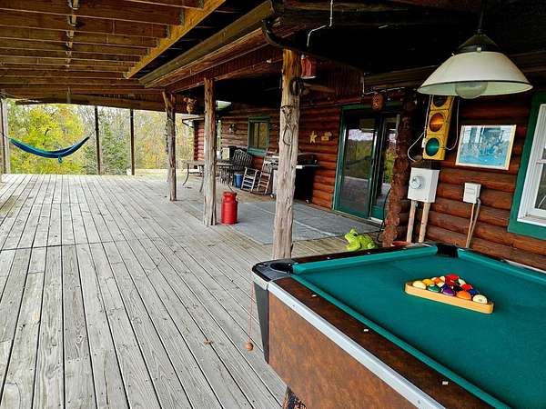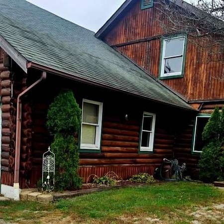 Gorgeous 4 bed, 2 bath log home on 10.11 secluded acres. Conveniently located in Guilford, IN. within Sunman Dearborn School System. Breath-taking views from full length porch, designed for outdoor entertaining. Private woods holds a secret early settlement- Original barnwood used within the home in restoration, lending genuine authenticity and charm to rustic vibe. Beautiful primary bedroom, with distinctive high ceiling, walk in closets, attached bath. Two bedrooms up, two down, with bath on each floor. Unique custom bath on first floor offers unique charm with built in out-house style. Large pond for fishing, stands and blinds make for excellent hunting. Two car garage with attic loft, greenhouse and utility shed, fenced garden all ready for quiet homestead living. Sanctuary borders, back of property. Call for details and to schedule your visit.