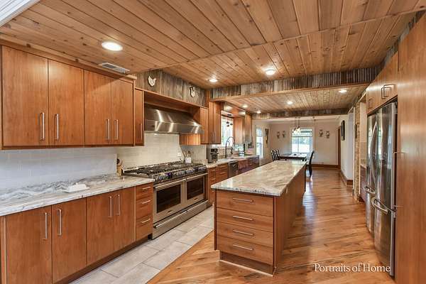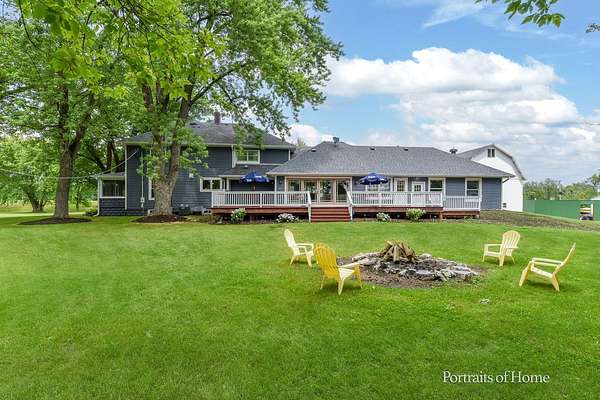 Est $4,529/moUpdated Farmhouse in a prime location. 2 outbuildings, 1 lrg 2-story barn 67x40 and 44x44 pole barn, both sold as is. Horses allowed. Access to horse & snowmobile trails. Pole barn is a perfect opportunity for a home-based business, offers an office and is a dream man cave! Ladies! You will not be disappointed when you walk into this house! Gleaming hardwood floors through-out, kitchen designed for a home chef, 5 walk-in closets. 8" baseboards, crown molding, ceiling fans, coffered ceilings, home office. Master suite offers a sauna. + more!!